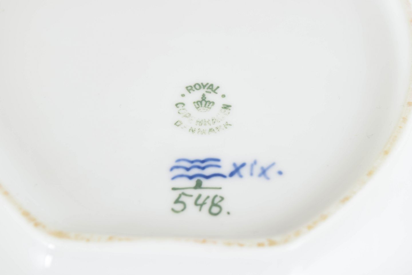 Musselmalet halvblonde blev introduceret i 1885 og repræsenterer en mere dekorativ fortolkning af det oprindelige Musselmalet stel. Kombinationen af den riflede form, blondekanten og den håndmalede dekoration gjorde stellet særligt populært i første halvdel af det 20. århundrede. Fade med hank som dette blev ofte anvendt til servering og er i dag eftertragtede samlerobjekter på grund af deres funktionelle og skulpturelle udtryk.