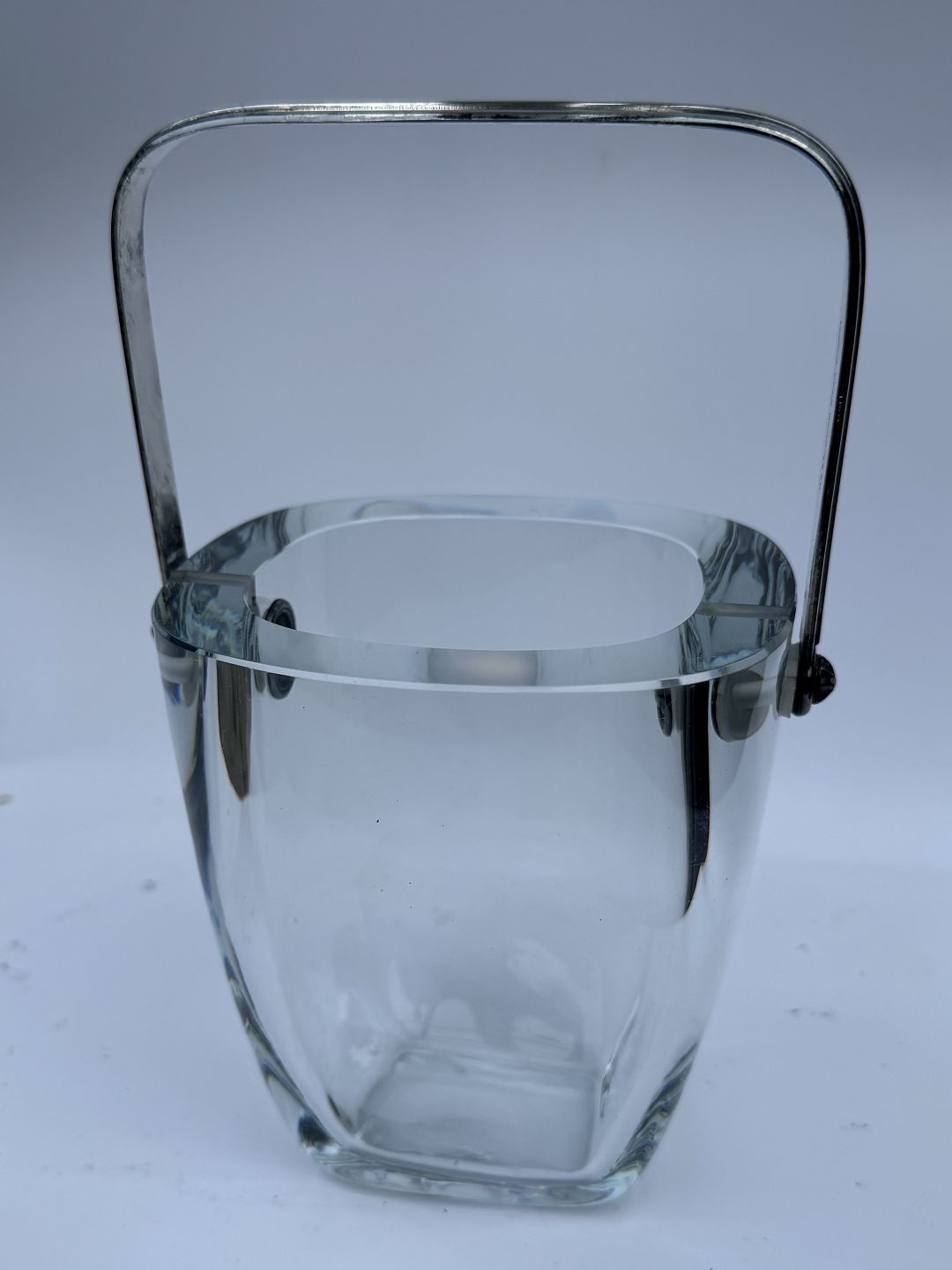 Isspand i glas fra svenske Strömbergshytten med greb i sterling sølv af E. Dragsted. I god stand.