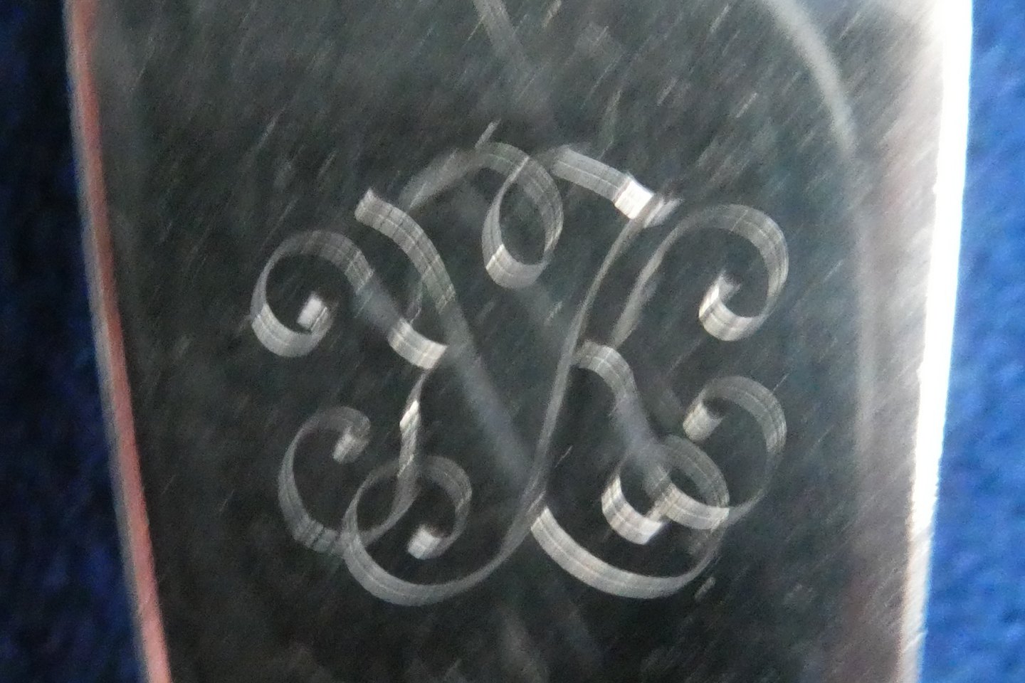 Par små dessertskeer eller barneskeer i engelsk sterlingsølv.