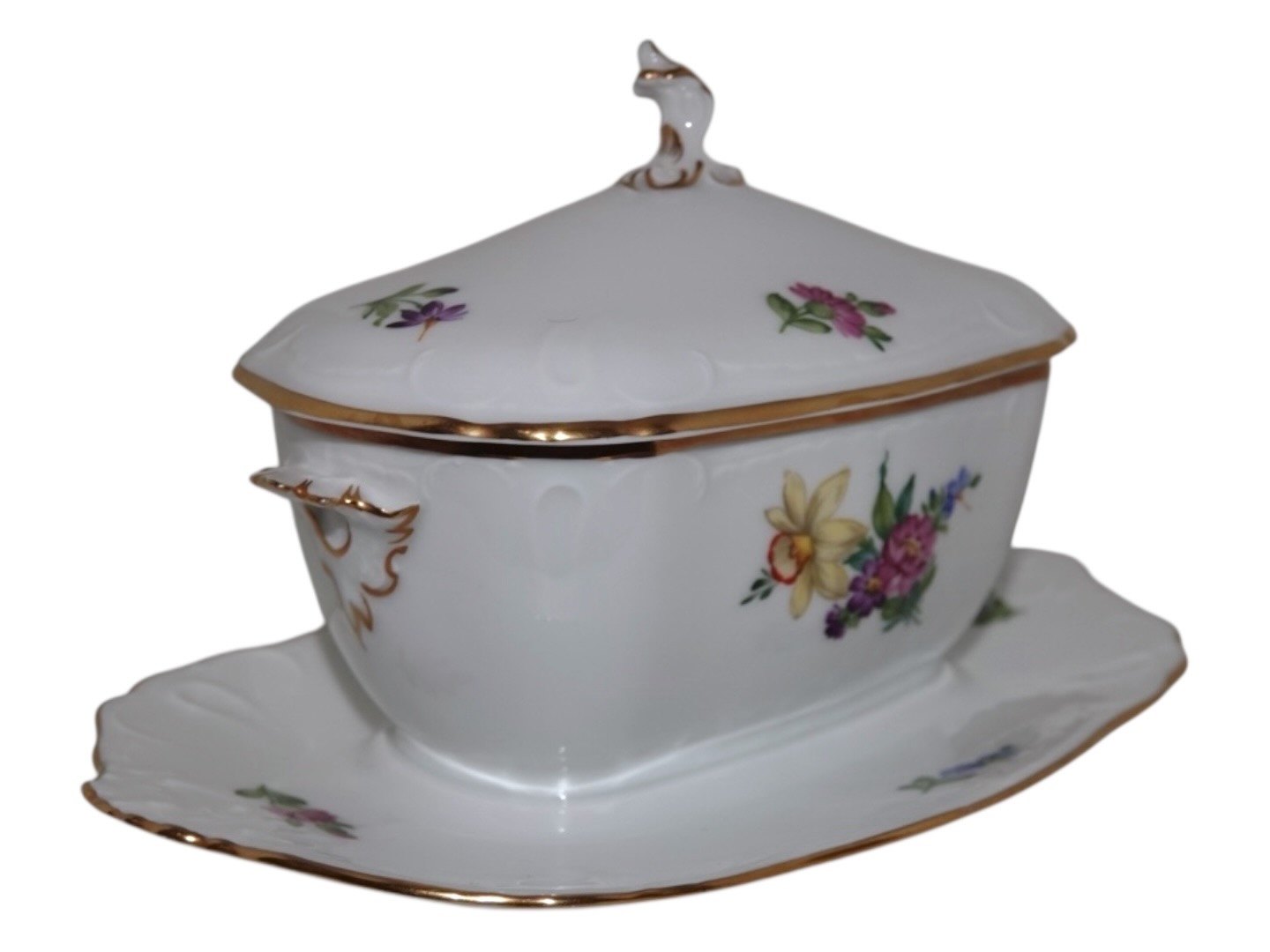 Royal Copenhagen Let Saksisk Blomst, sjælden firkantet sovseskål med låg.