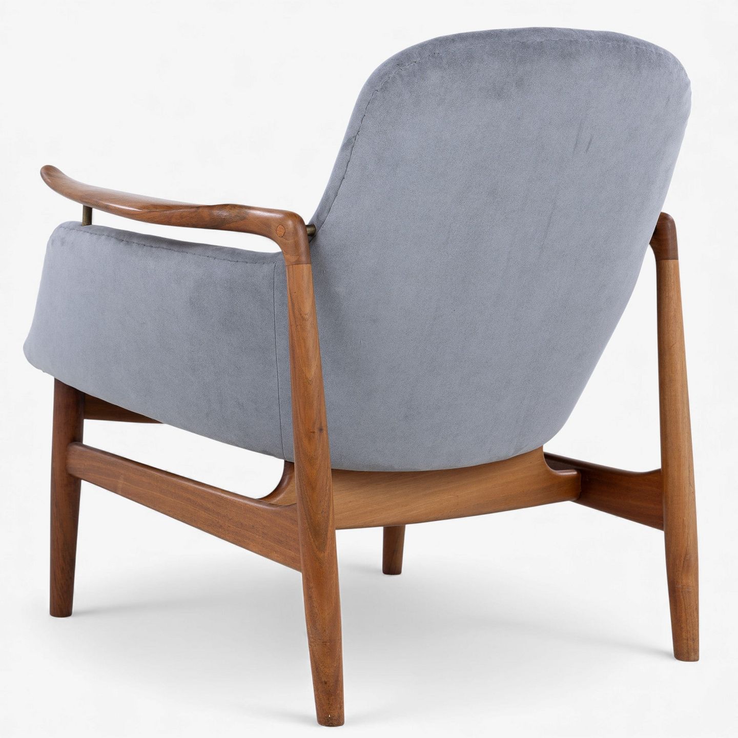 NV 53 - Lænestol i gråt 'Alcantara'-stof med stel i patineret valnød.