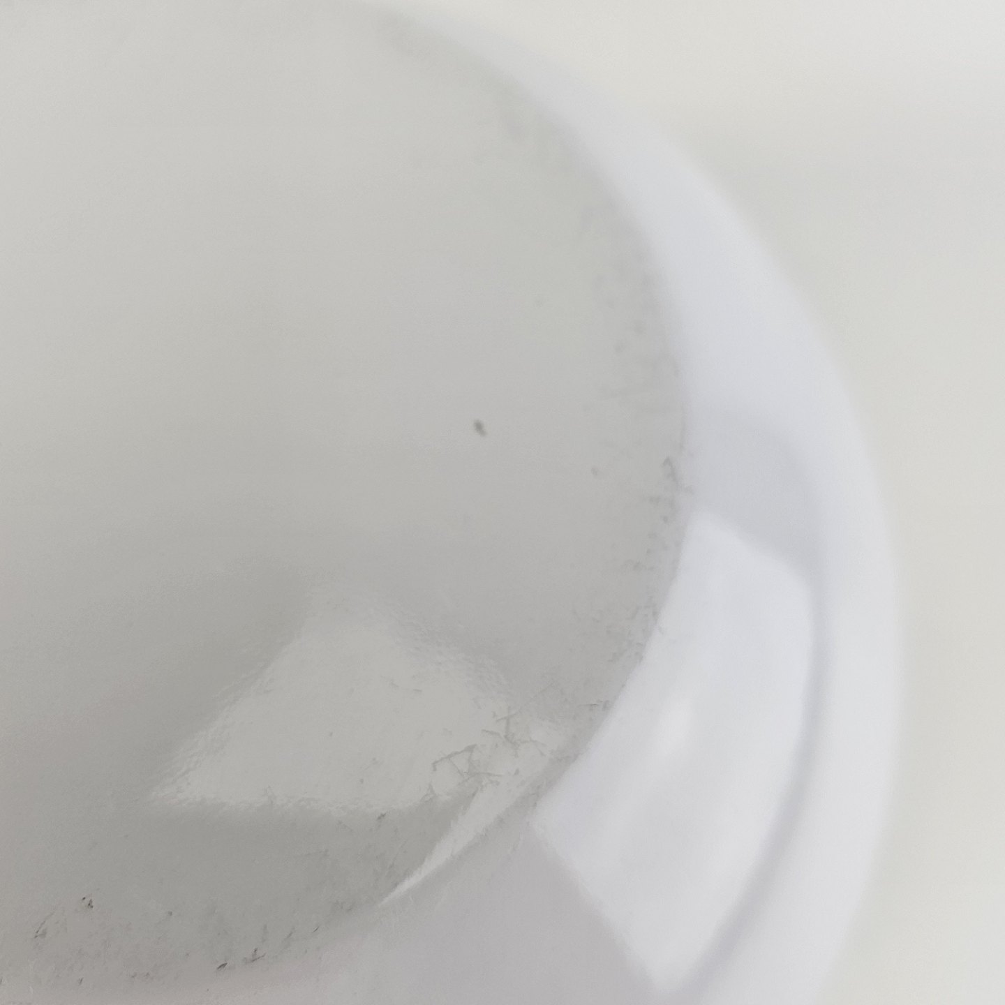 Fremstår med små skrammer i overfladen på indersiden og under bunden