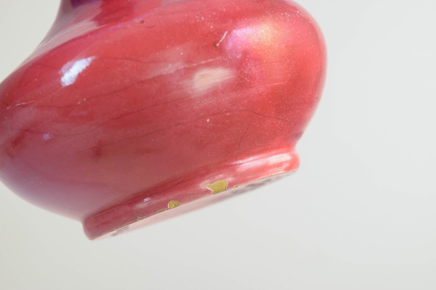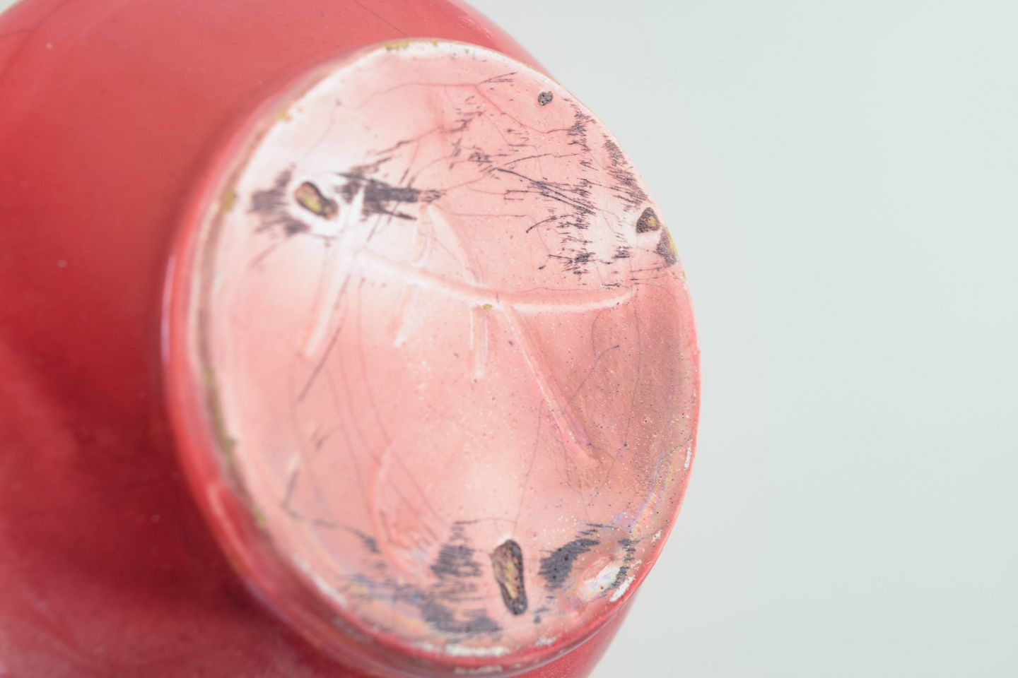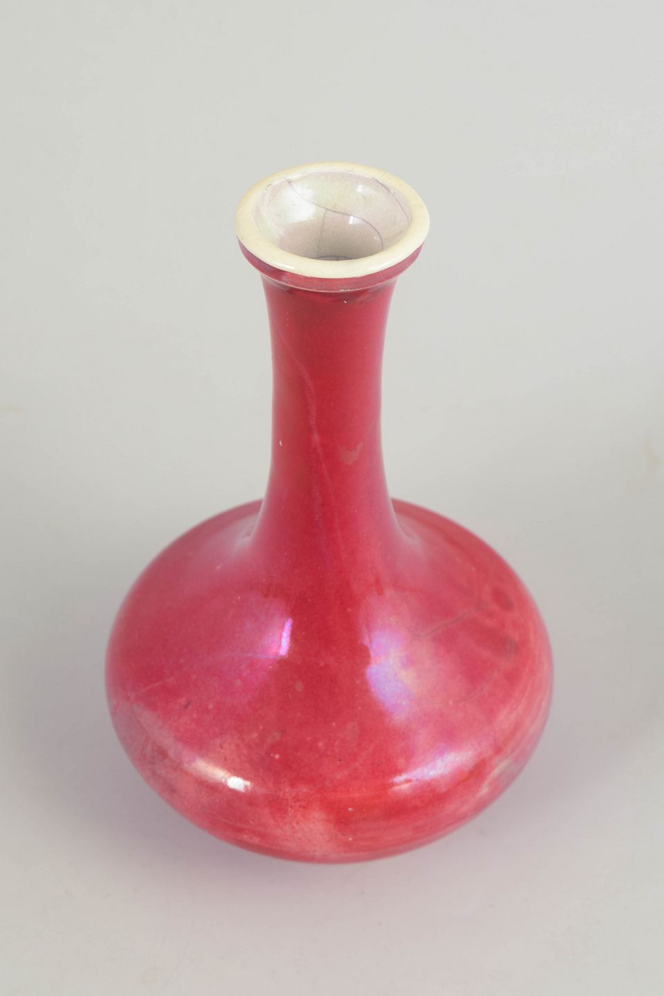 Slim-necked vase with a rounded body and a rare deep red glaze showing subtle tonal variation. Executed in glazed stoneware with an early 20th-century silhouette.