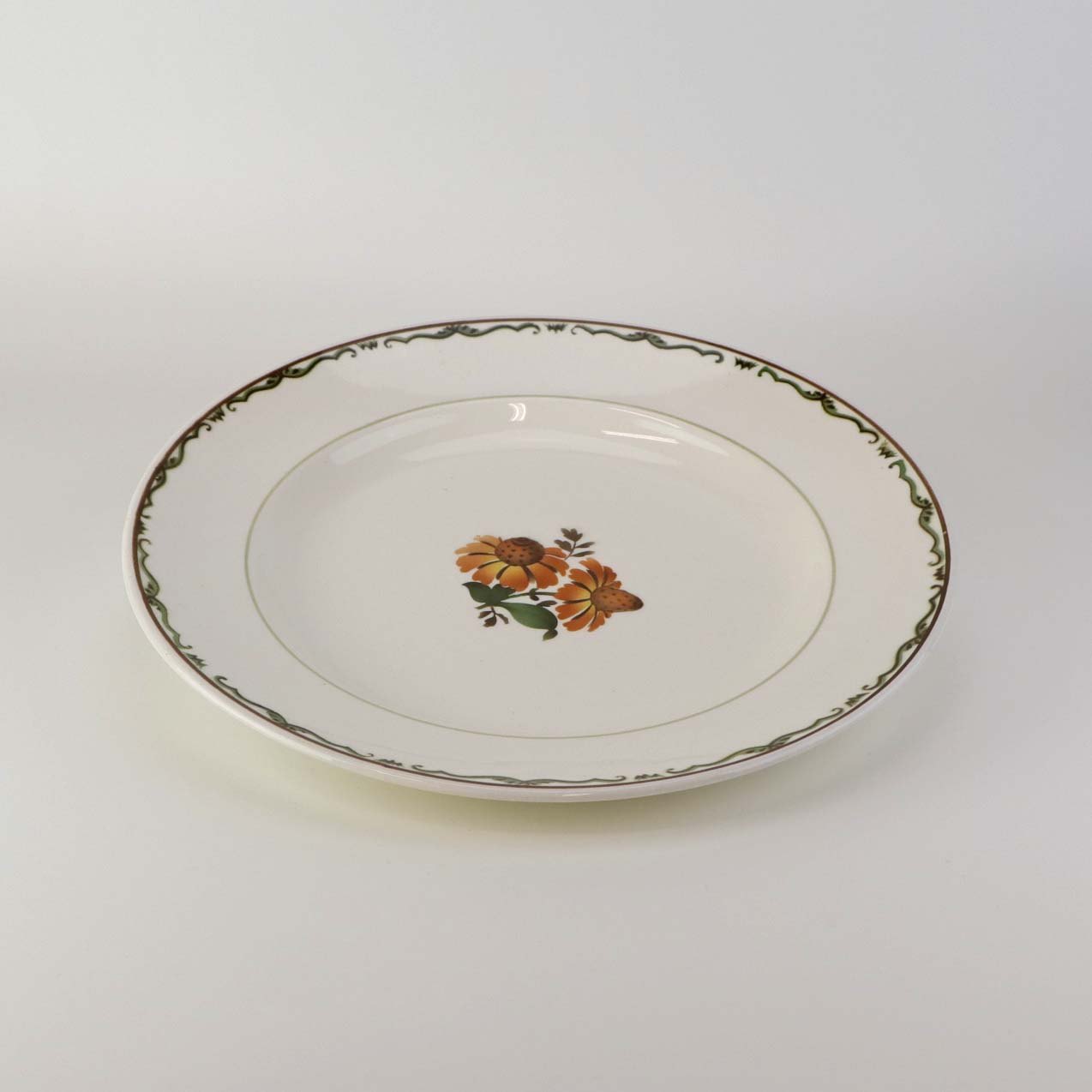 Middagstallerken i fajance fra stellet Solbrud fremstillet i perioden 1937-1967