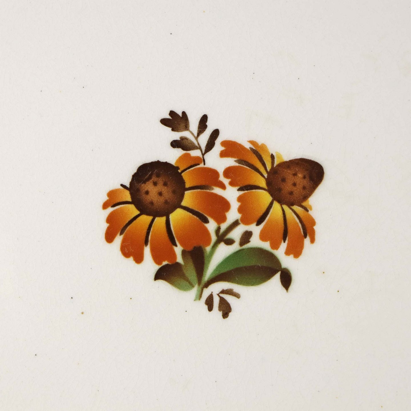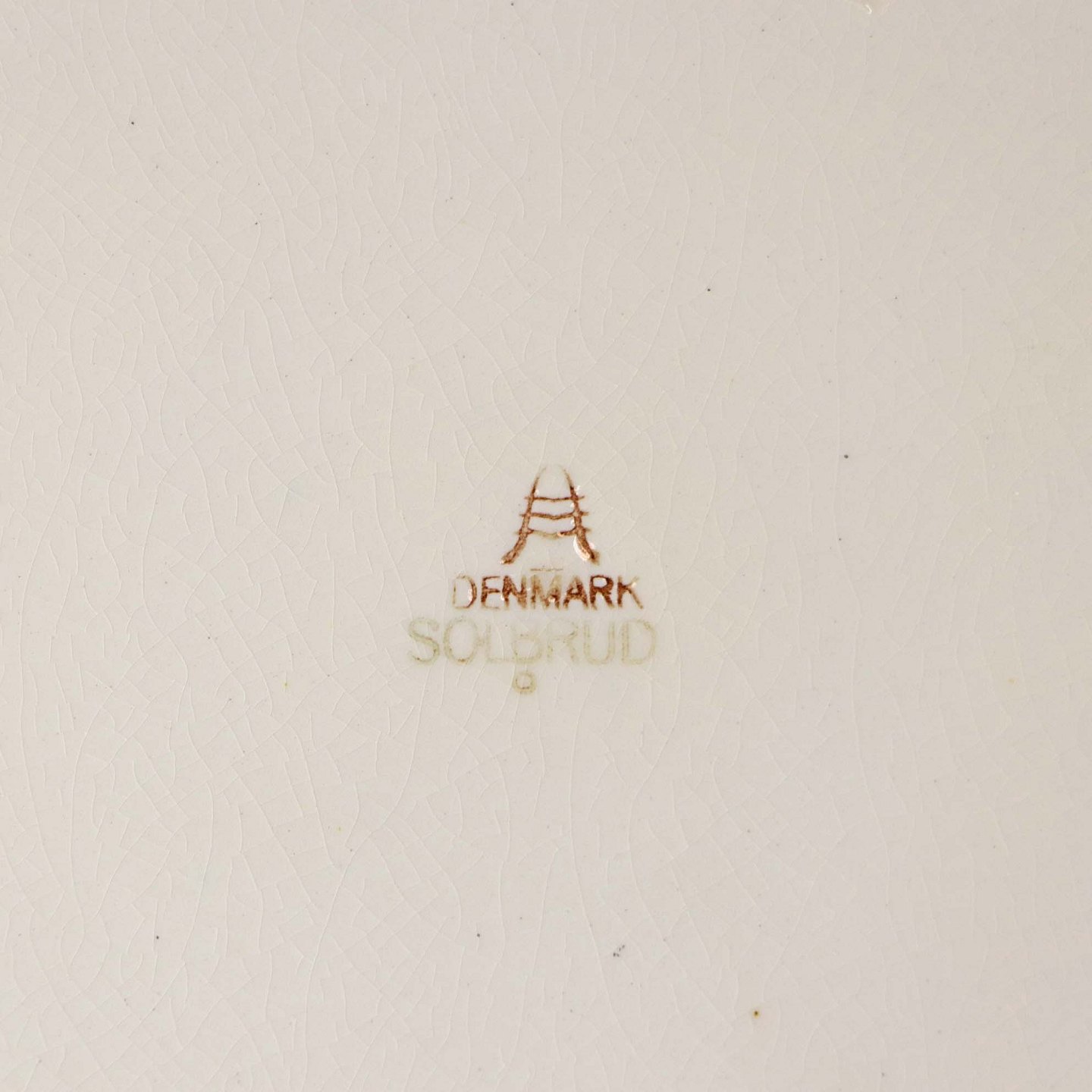 Rundt serveringsfad i fajance fra stellet Solbrud fremstillet i perioden 1937-1967