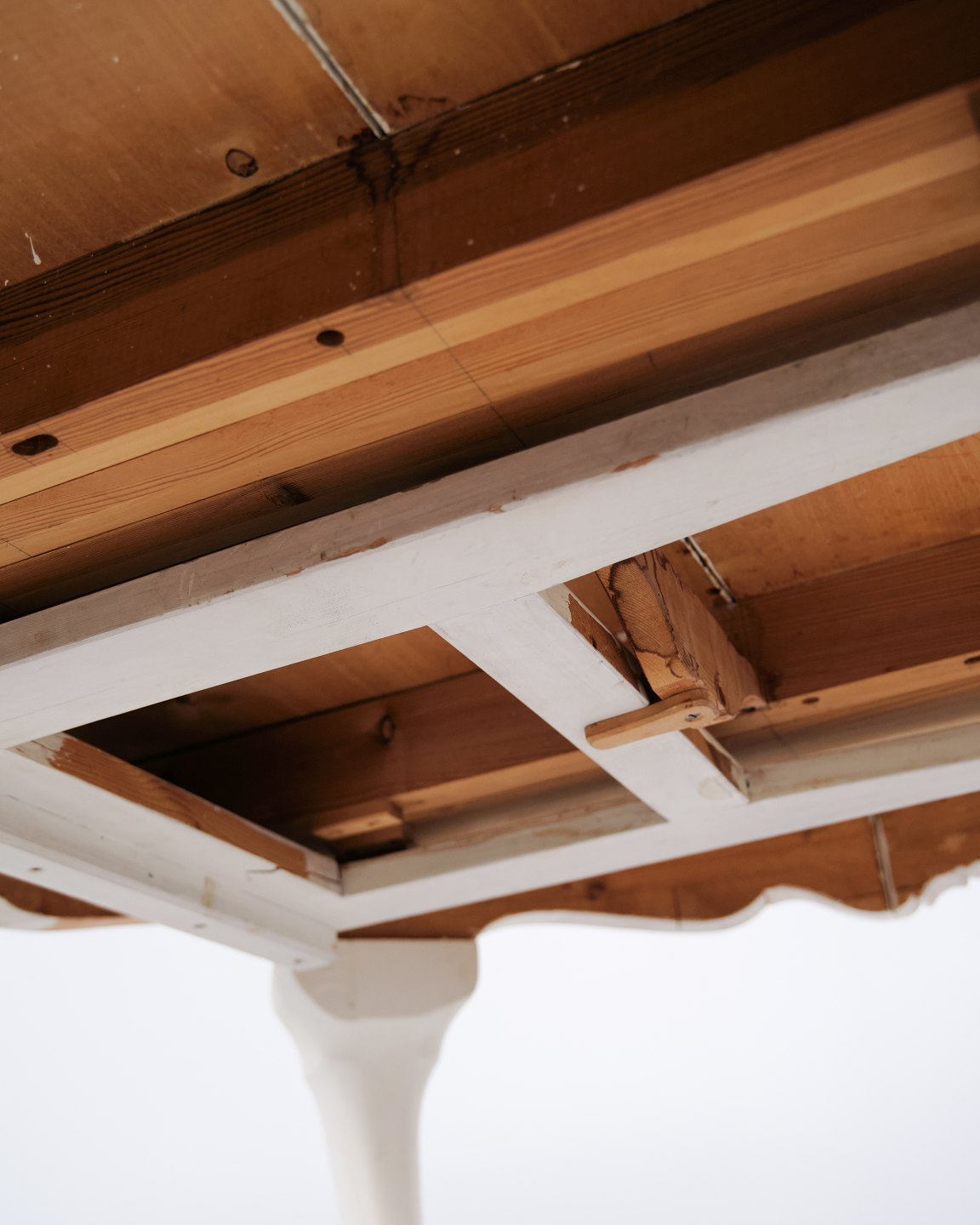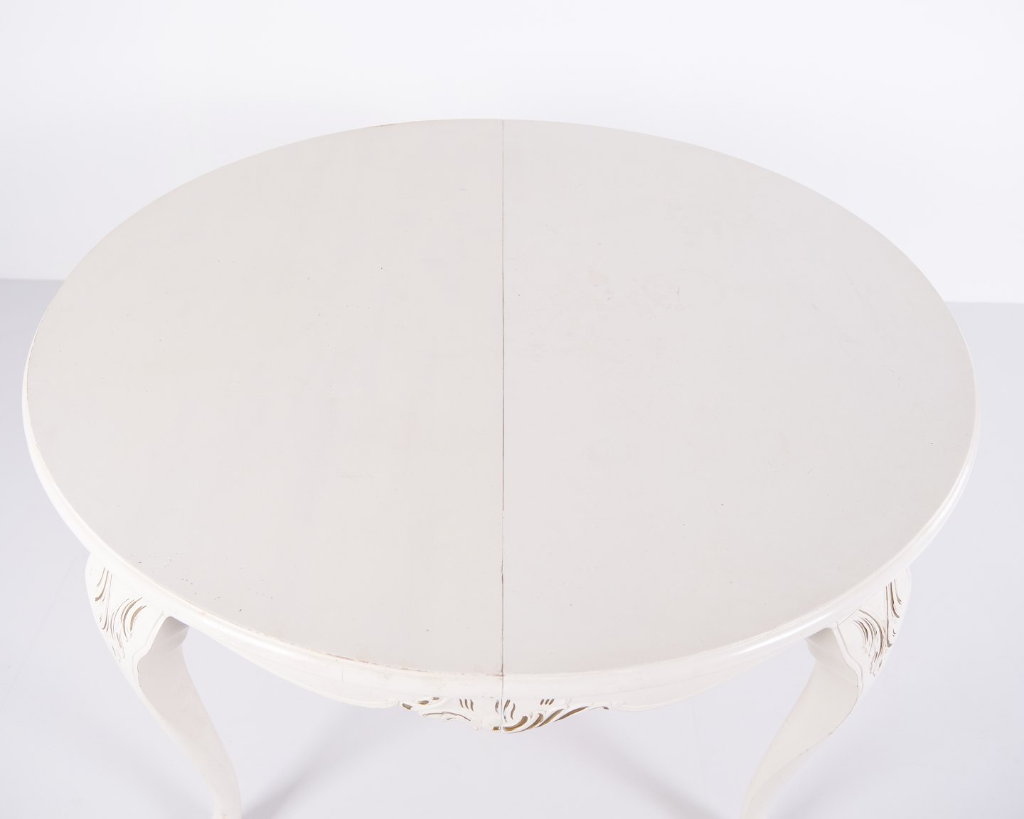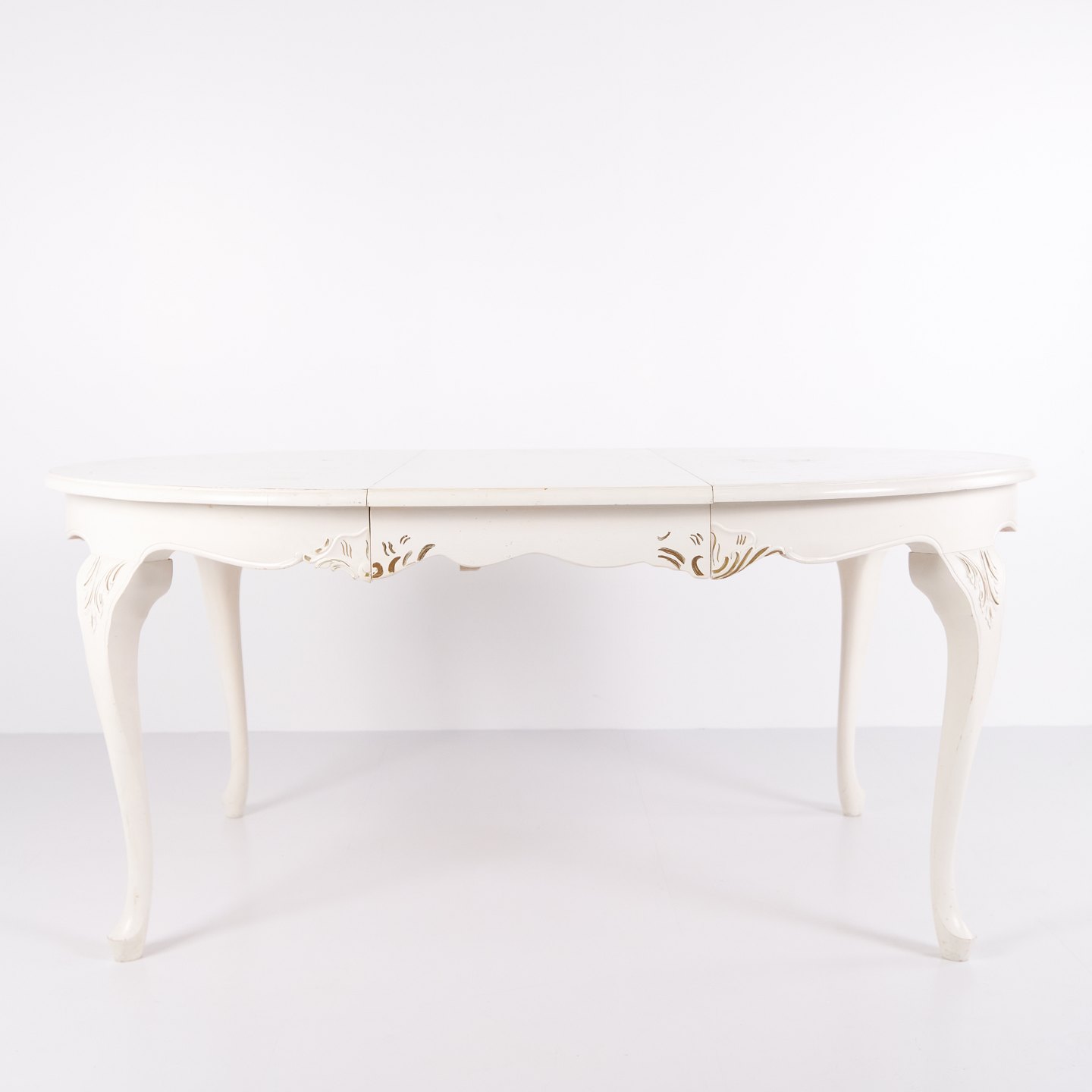Antikt Rundt Spisebord Med Udtræk - Ny Rokoko Stil - Hvidmalet Med Dekorative Detajler - År 1920erne