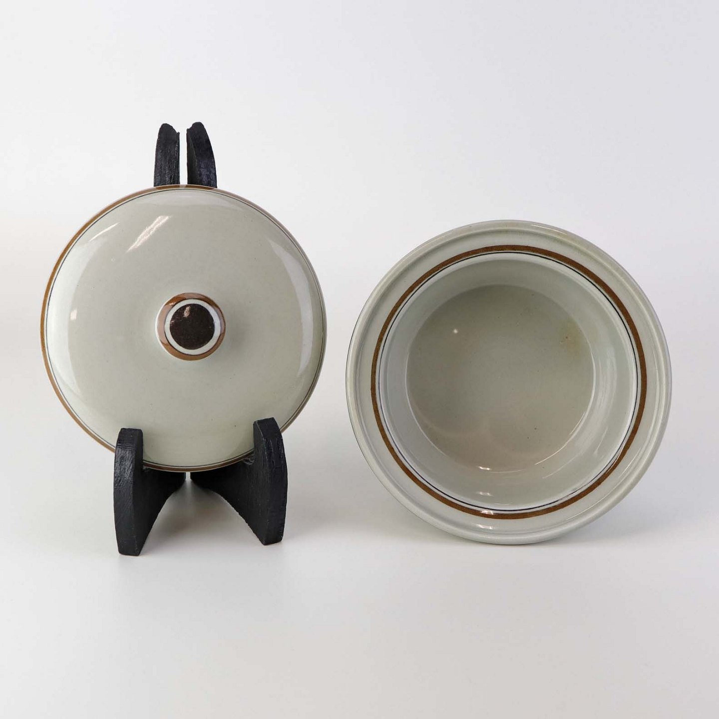Smørskål med låg i fajance fra stellet Kirsten, som blev fremstillet i perioden 1934-1957. Nr. 1749
