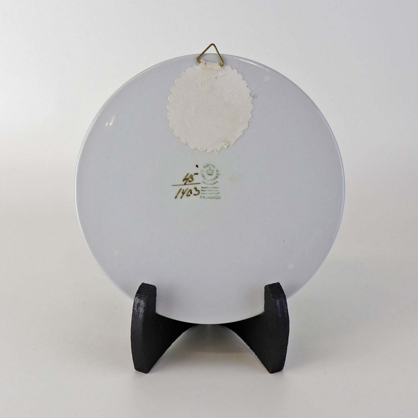 Rund smørbrik i fajance med ophæng fra stellet Brun Tranquebar fra år 1919. Nr 45/1403