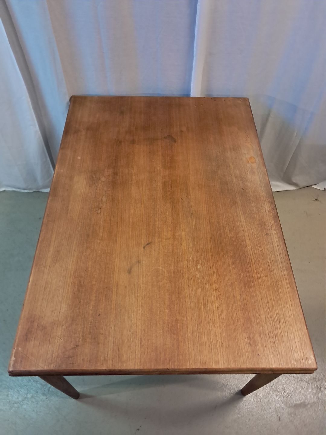 Spisebord i fineret teaktræ med hollandsk udtræk, fra 1960erne.