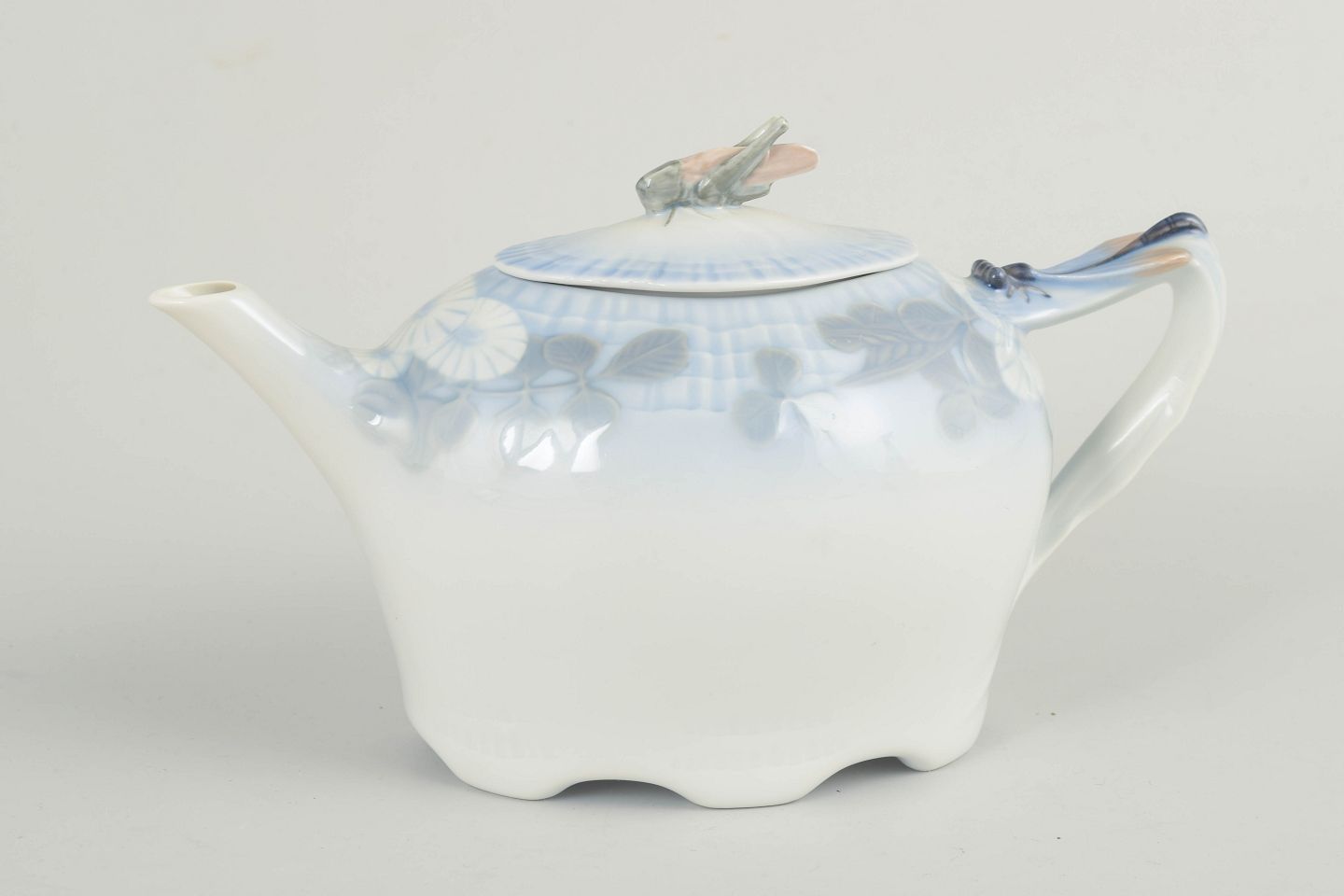 Elegant tekande i porcelæn fra serien Skærsommernatsdrøm, model 73/10036. Formen er blødt svungen med integreret tud og hank, og låget er forsynet med et naturalistisk knopgreb. 1. sortering.