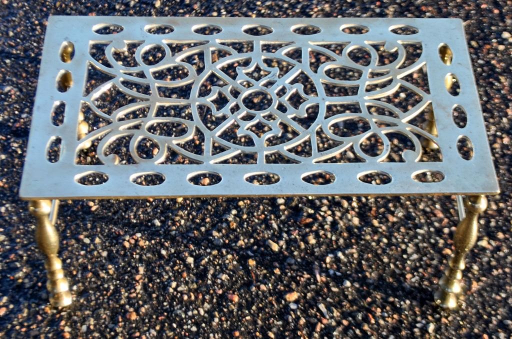 Varmeplade, England, 19. årh. Messing. H: 16 cm. B: 34,5 cm. D: 19 cm.
