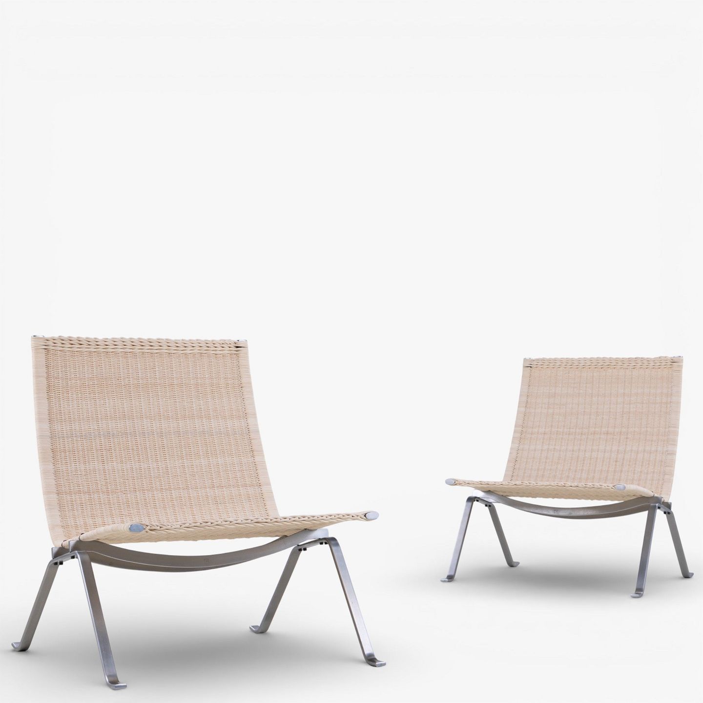 PK 22 - Lænestol i nyflettede peddigrør med stel i stål. Stemplet fra producent.