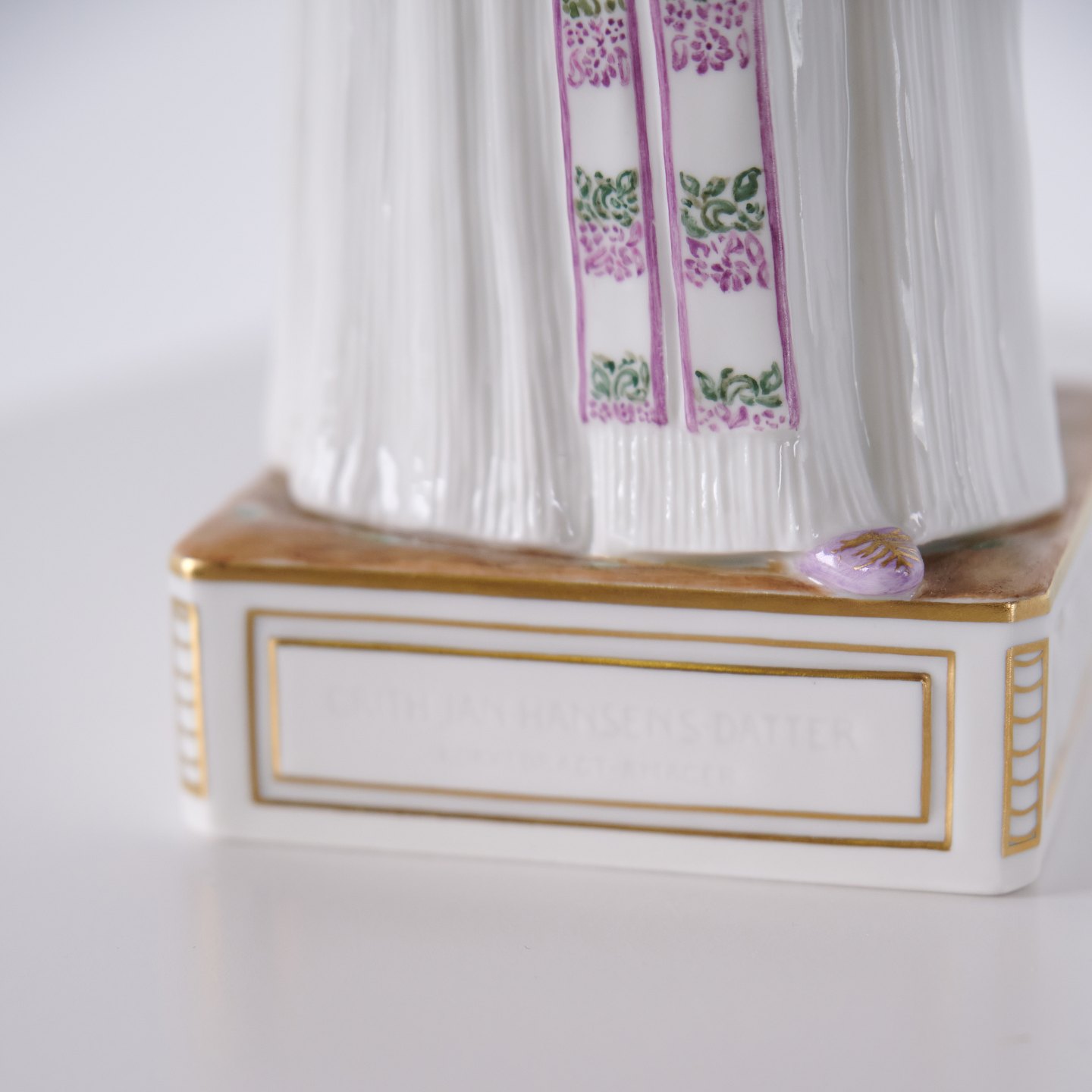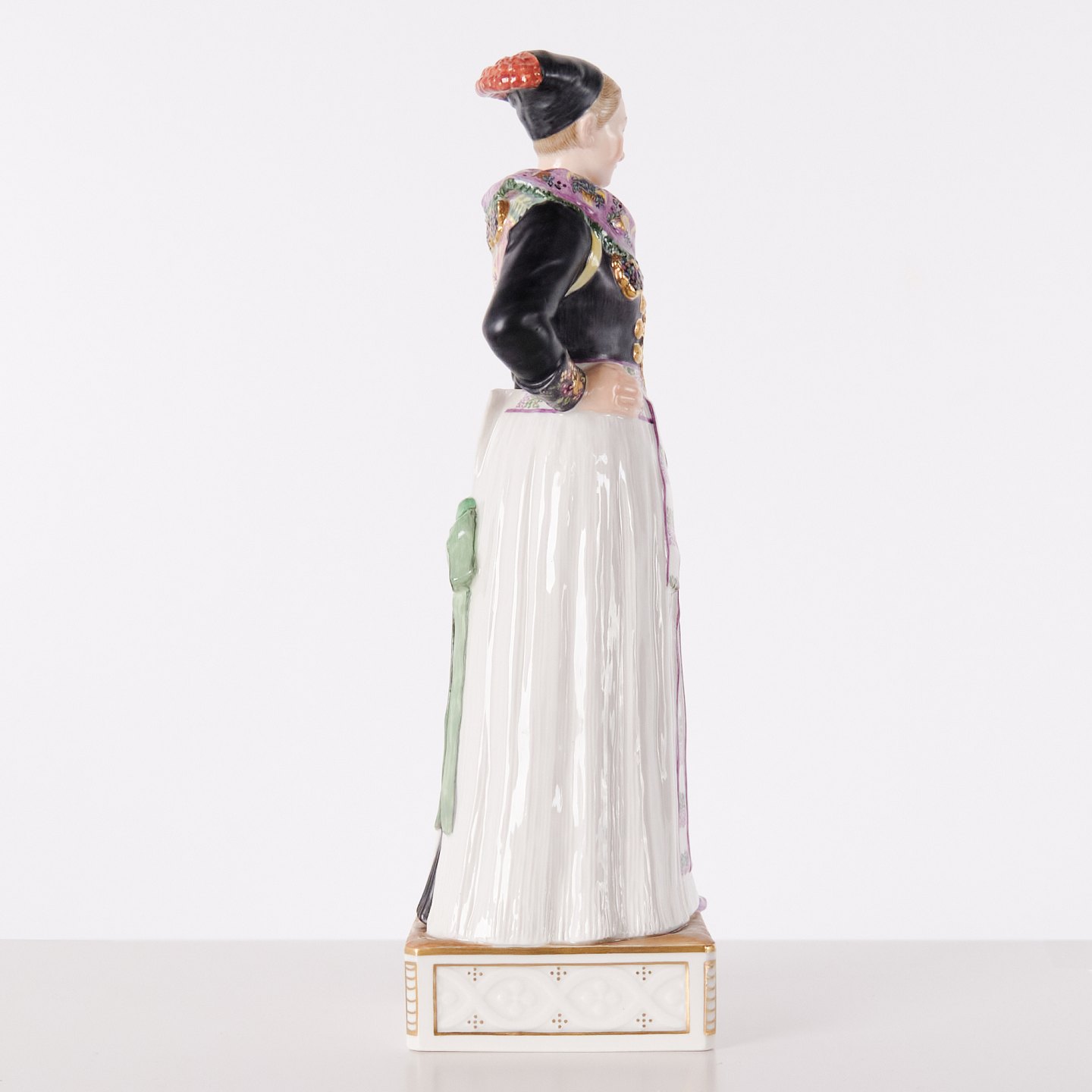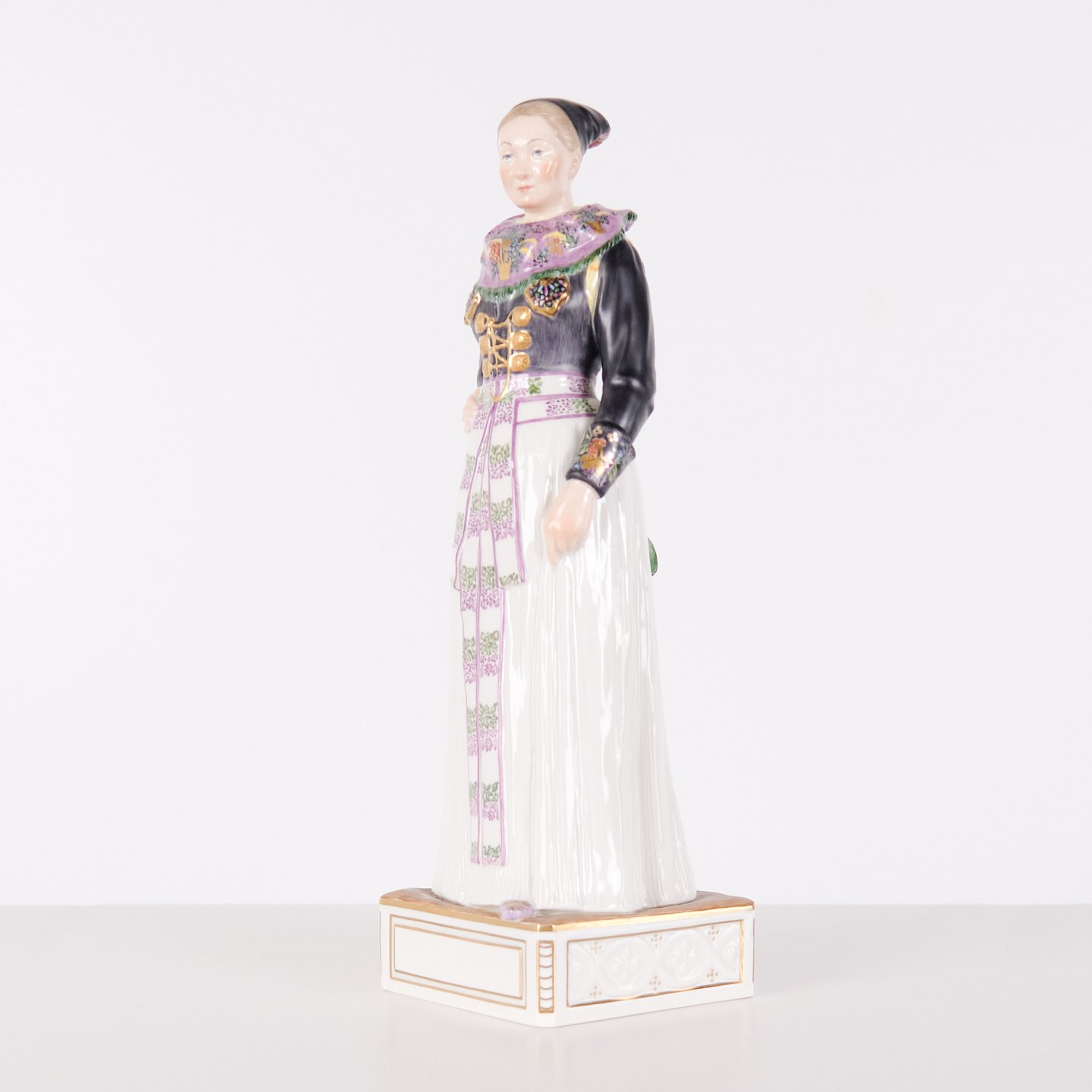 Figuren er udført i porcelæn med overglasurdekoration og fremstår som 1. sortering i hel og fin stand.