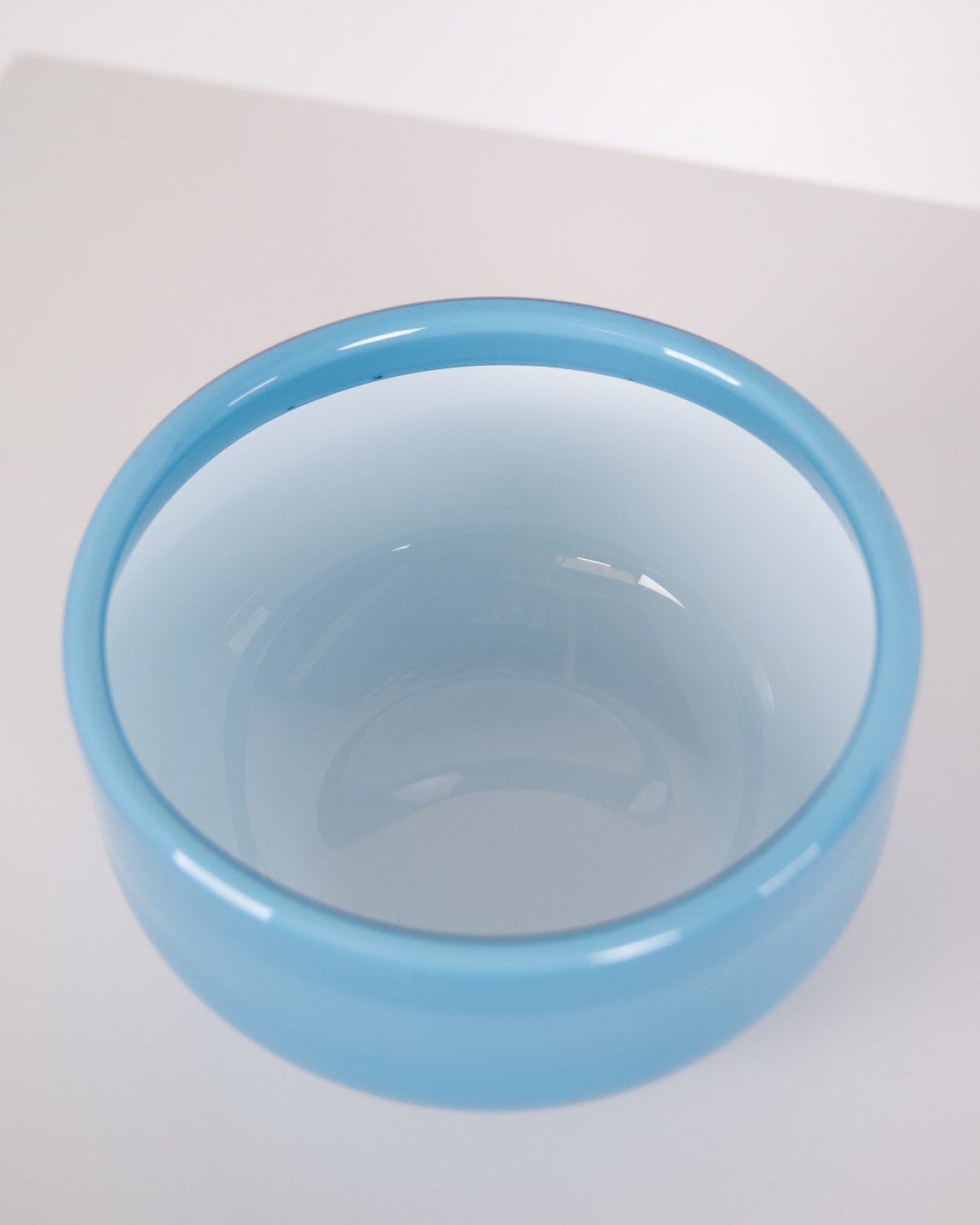Glass bowl from the Palet series designed by Michael Bang for Holmegaard. The bowl is made of glass in a blue colour tone and is part of the Palet series, produced at Holmegaard in the second half of the 20th century. The series is known for its use of coloured glass within Danish glass design.