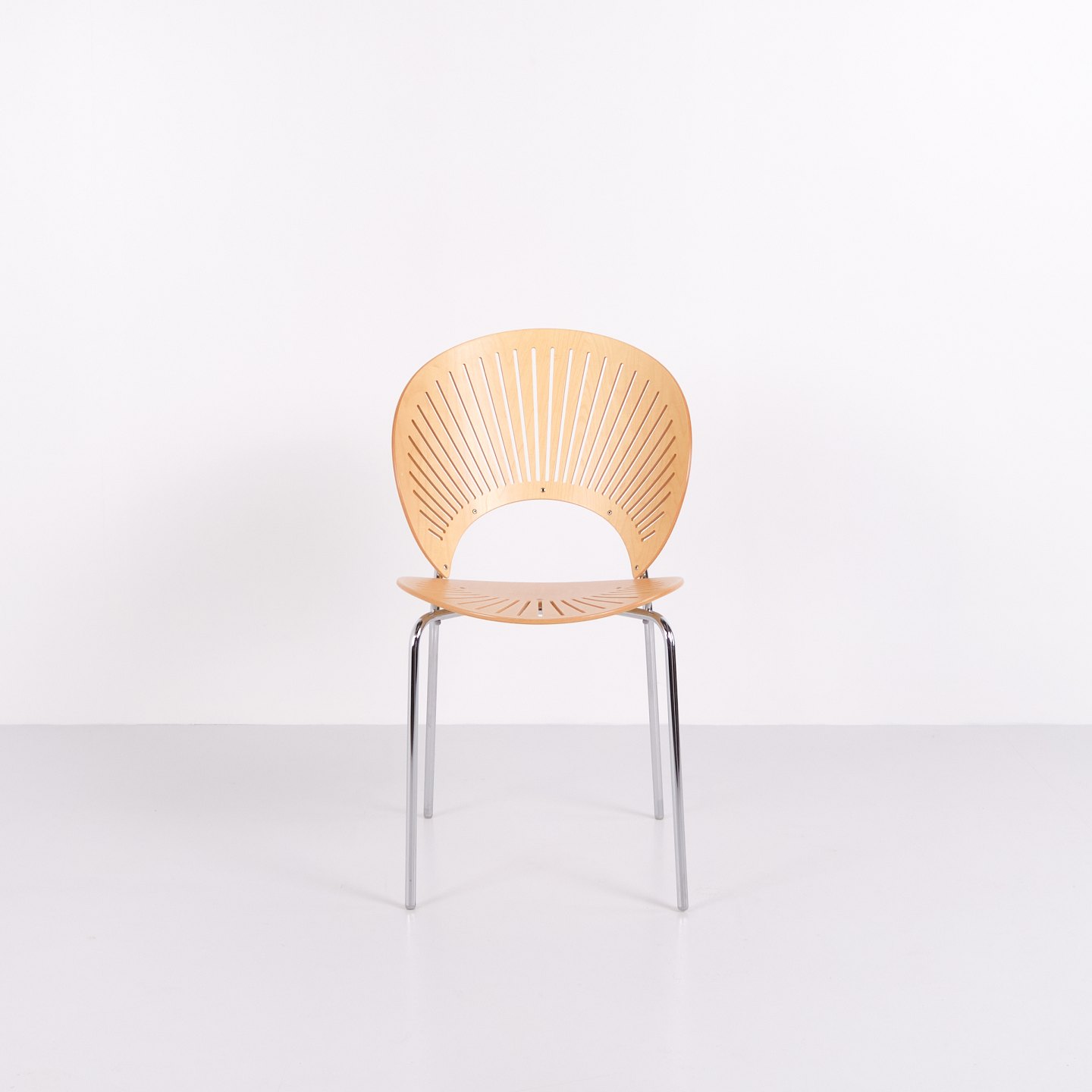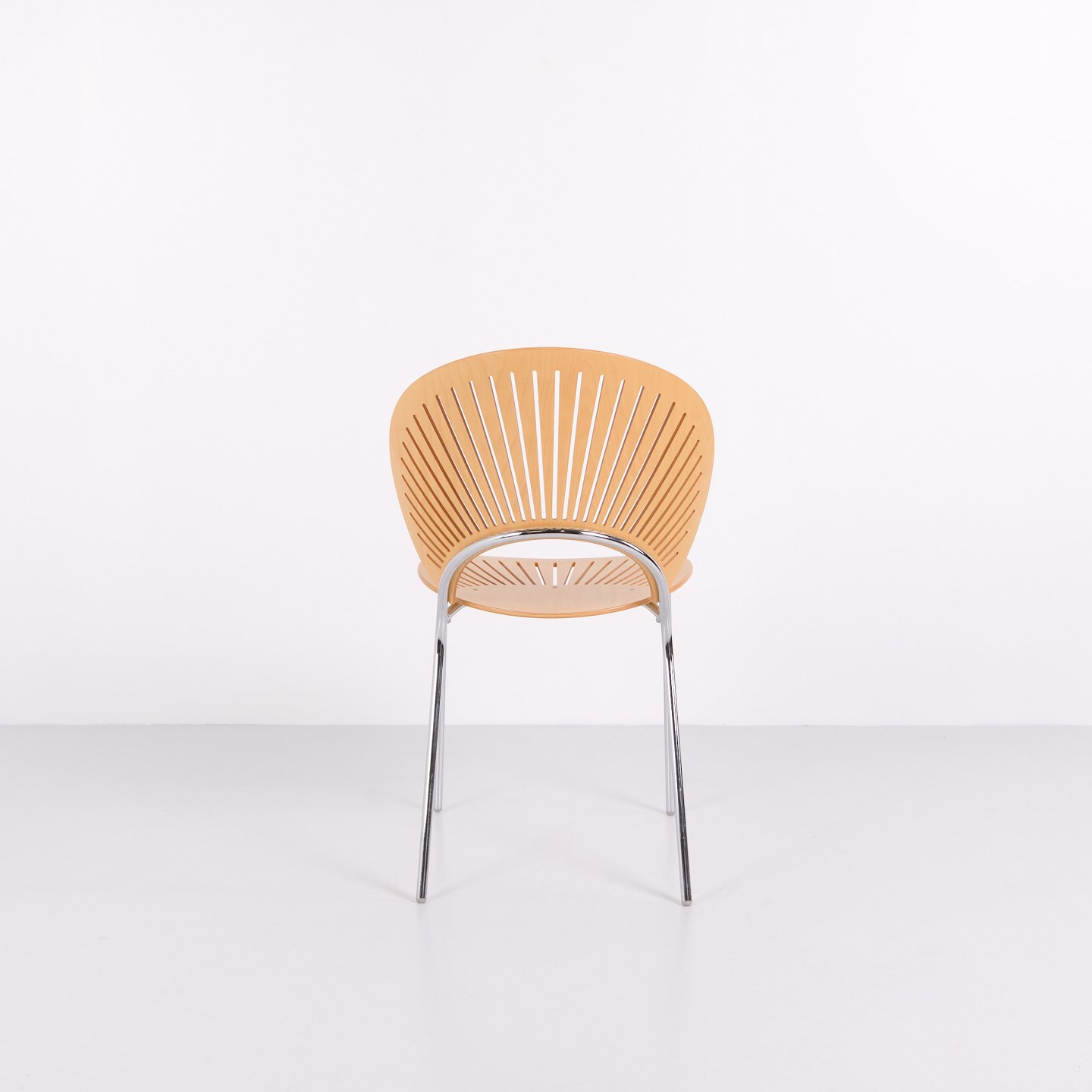 Sæt bestående af fem spisebordsstole, model Trinidad 3398, designet af Nanna Ditzel. Trinidad-stolen er kendt for sin karakteristiske udskårne ryg og blev introduceret i 1990’erne som en del af Nanna Ditzels arbejde med lette, funktionelle stole til moderne indretning. Modellen er anvendt både som spisebords- og konferencestol og indgår i dansk møbeldesign fra slutningen af det 20. århundrede.