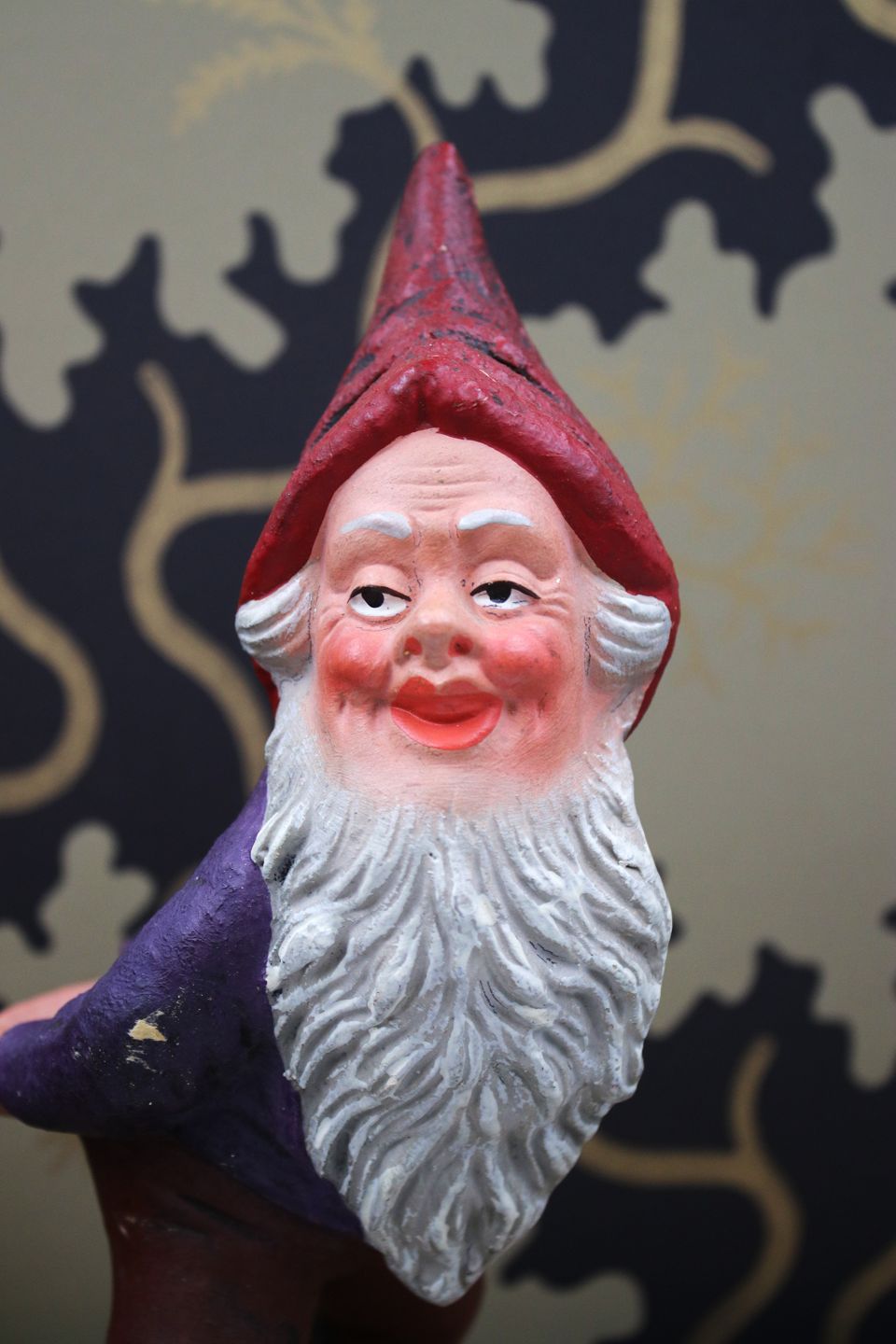 Gammel julenisse i bemalet terrakotta med fin patina...