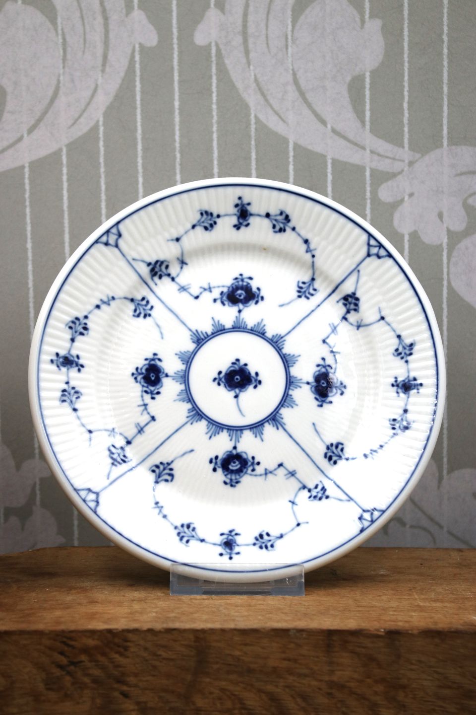 Royal Copenhagen Musselmalet Riflet tallerken i hotelporcelæn / jernporcelæn. Dia.: 19,5cm. Dekorationsnummer: 1/330. 2.sort.