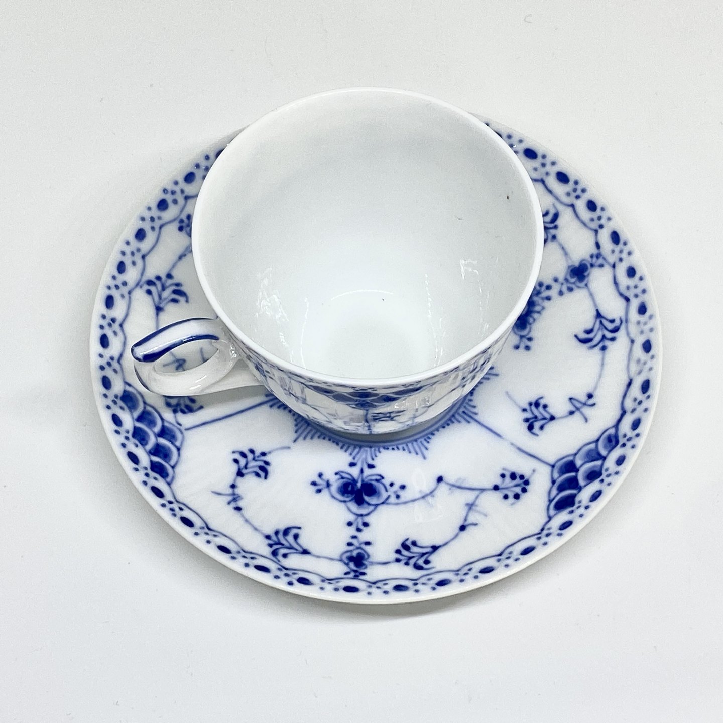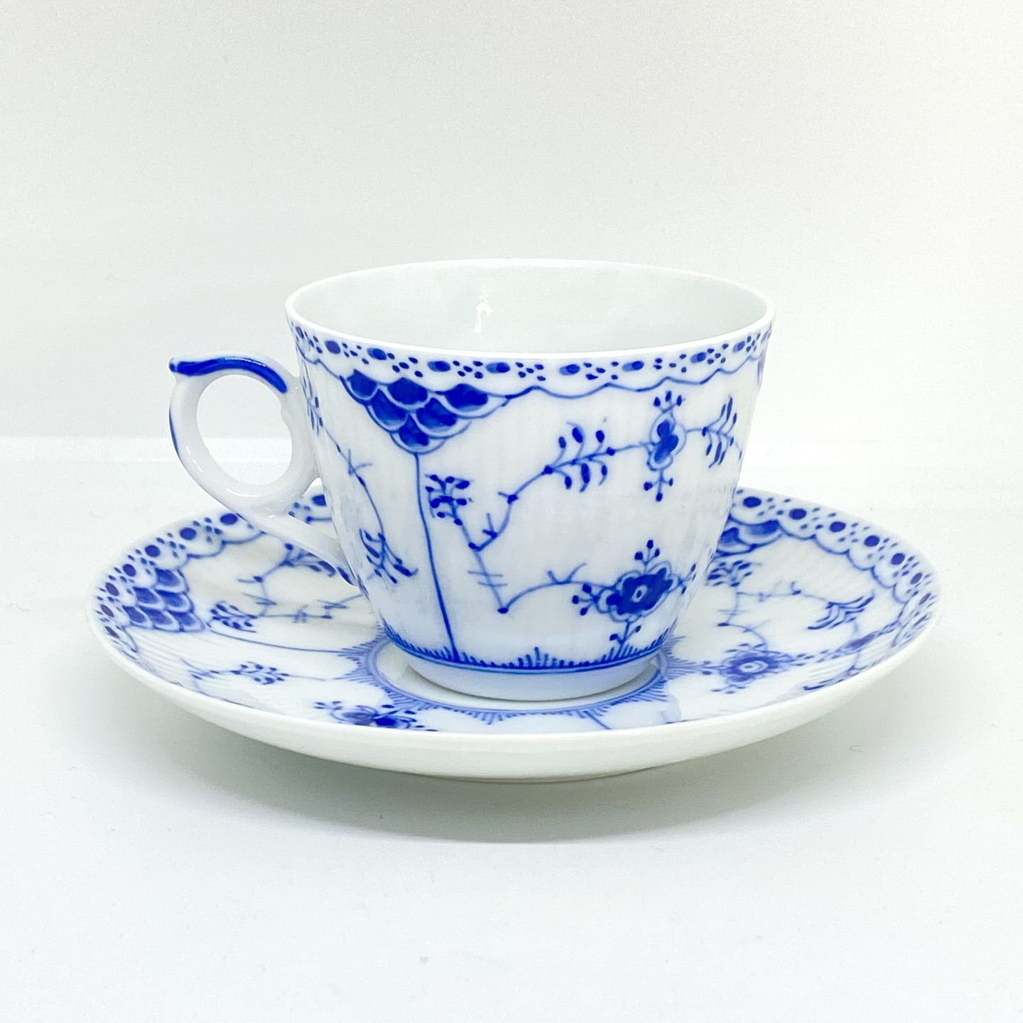 Royal Copenhagen/Kgl Musselmalet halvblonde kaffekop og underkop.