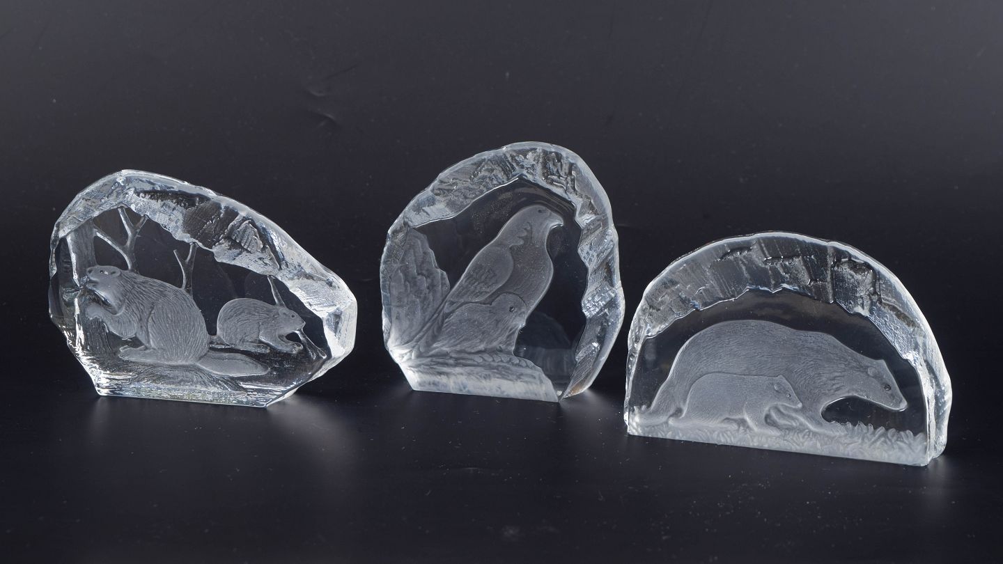 Paul Isling for Svenskt Glas, WWF kunstglasblokke, sæt med 3.