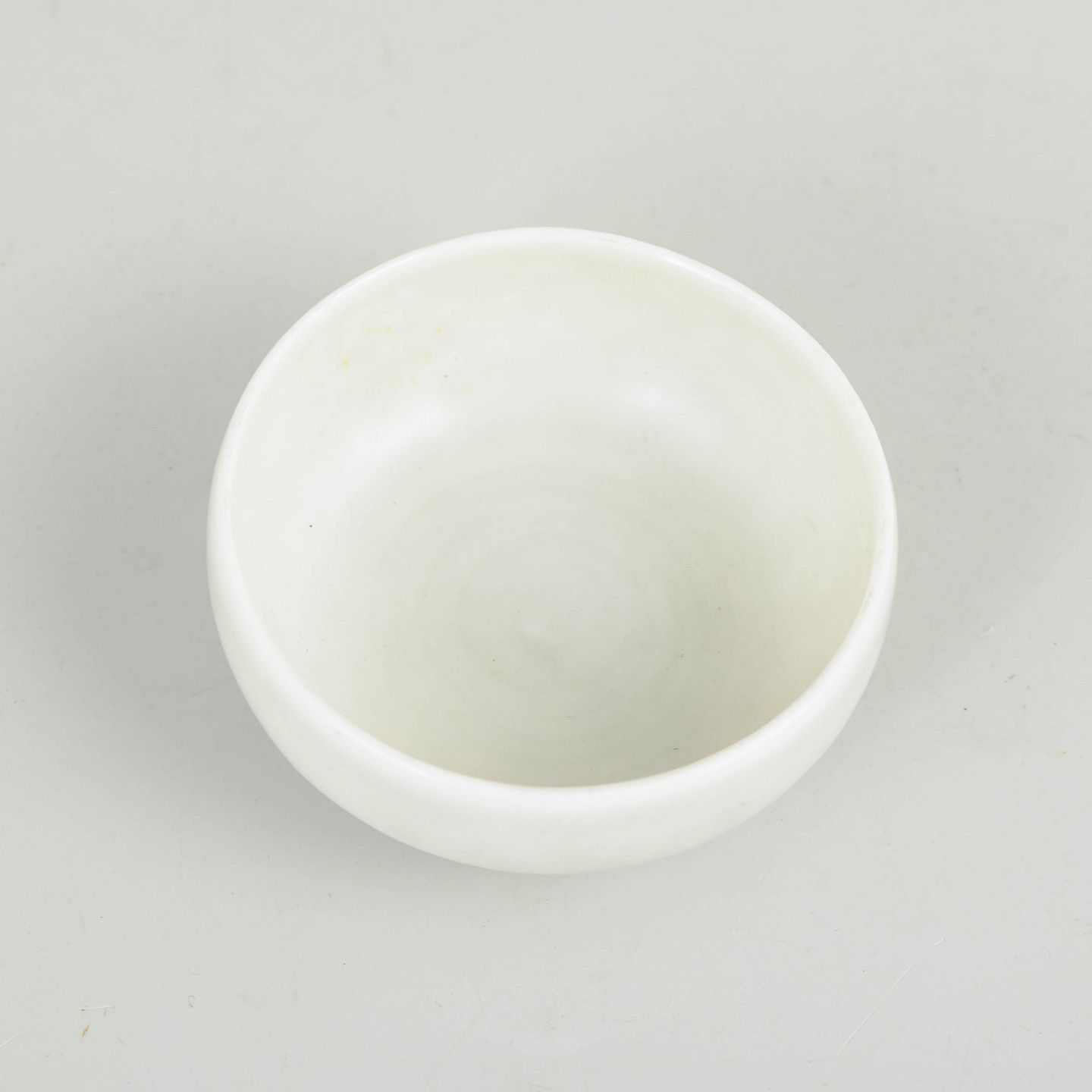 Lille rund skål i drejet stentøj med hvid, let satinmat glasur og blødt afrundet form. Dekoreret i enkelt og stilrent udtryk, typisk for Stålhånes formsprog.