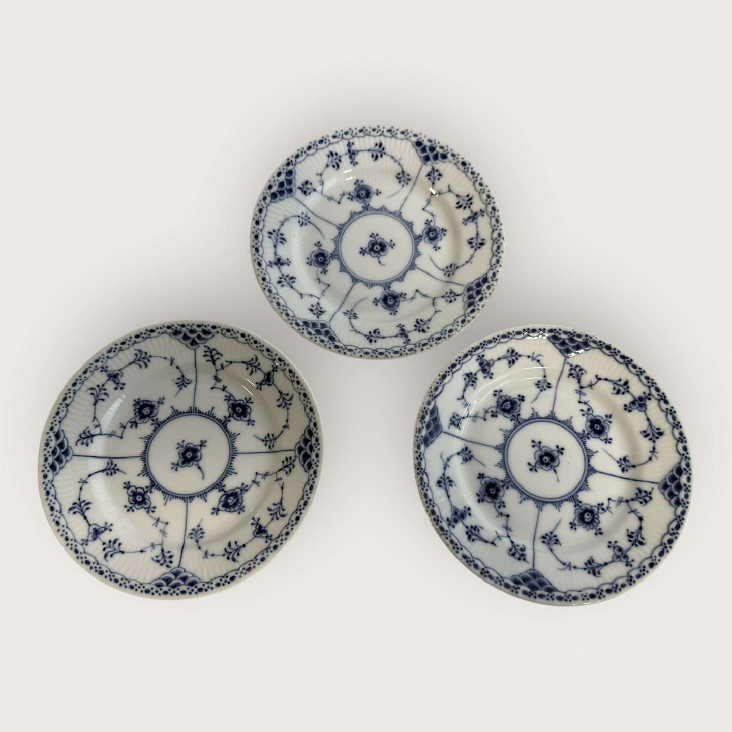 Royal Copenhagen, Musselmalet, Halvblonde, Kagetallerken #1/575, 16cm i diameter, 3.sortering / medarbejdersortering *Lidt sorte prikker under glasuren langs kanten ellers pæn stand*