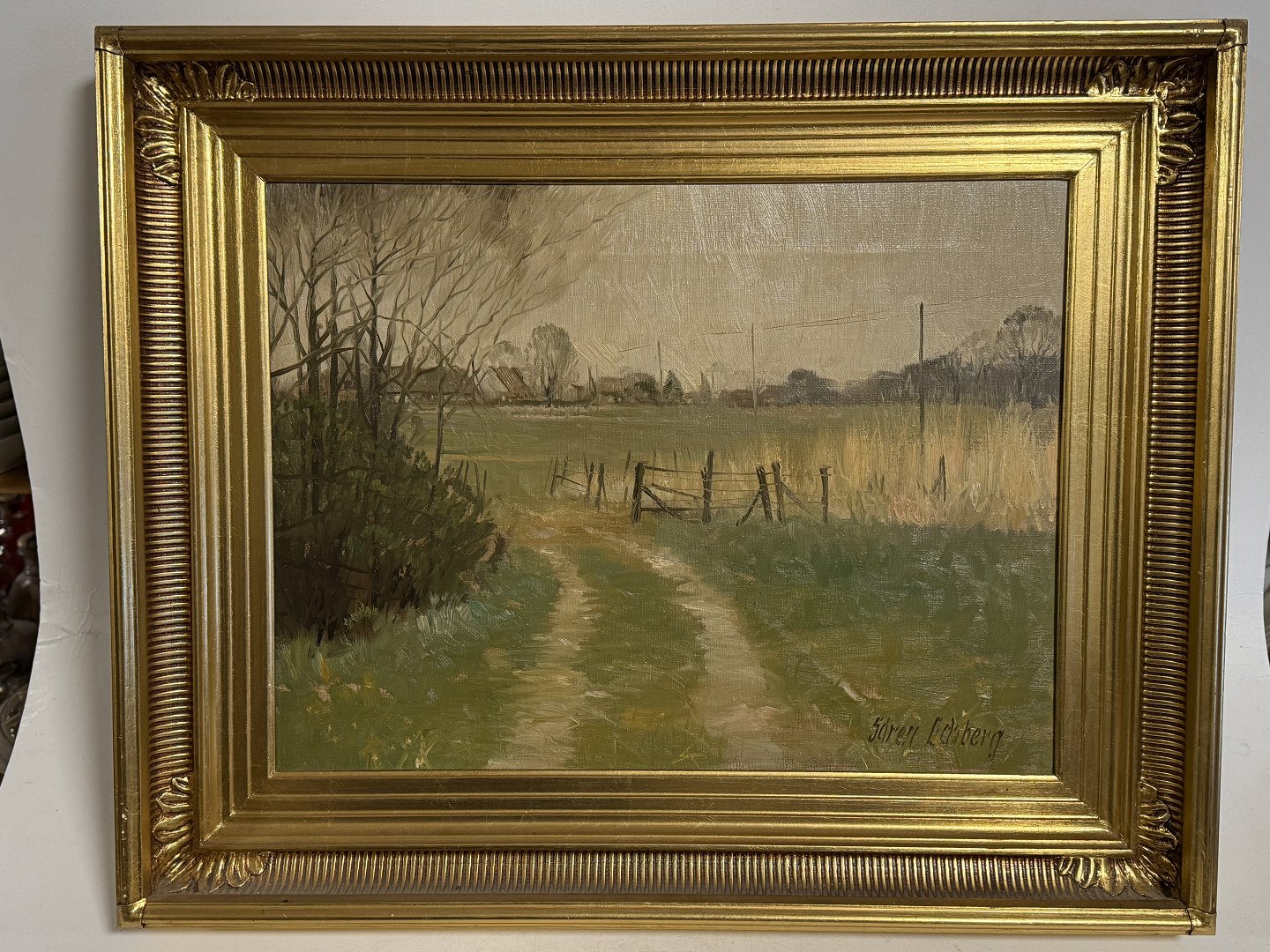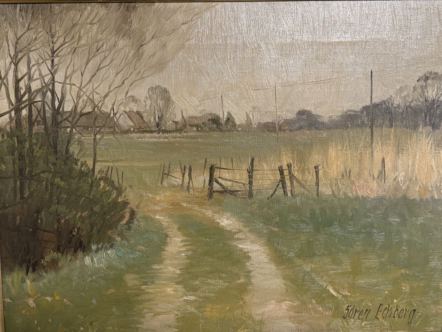 Søren Edsberg (f. 1945 ), Oliemaleri på lærred med motiv fra landet, Mål med ramme: 53x43cm *Pæn stand*