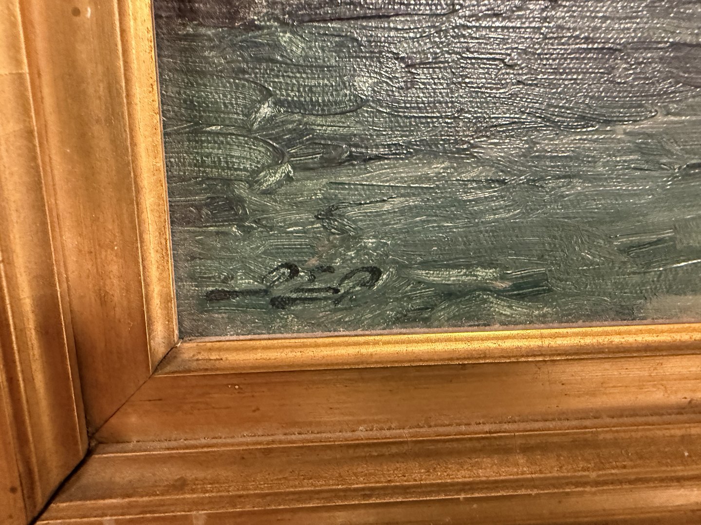 Peter Elias Petersen (1859-1950), Marmorbroen ved Christiansborg i København med godt lys over bro og vand, Signeret P.E.P. og bag på påskrevet P. E. Peteresen 1922, Mål med ramme: 46,5x44,5cm *Fin stand*