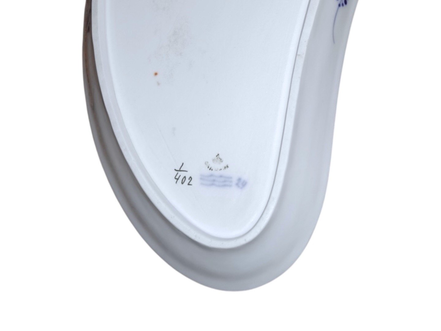 Royal Copenhagen Musselmalet Riflet, stort og meget sjældent måneformet anretterfad.