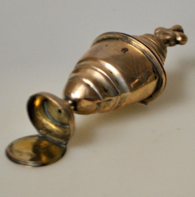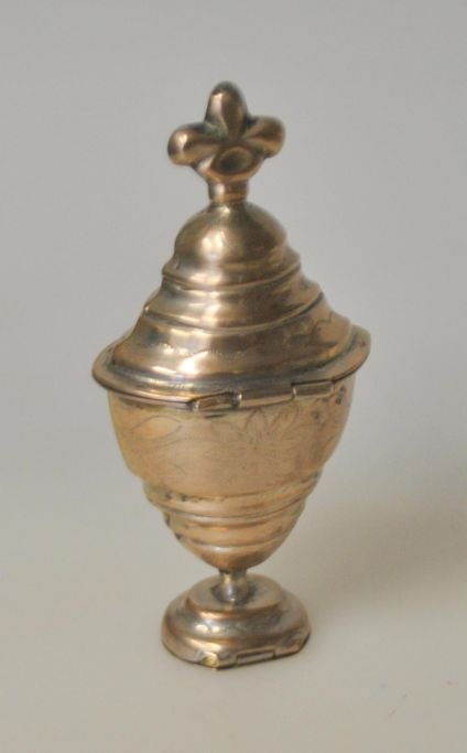 Niels Peter Falck (1779 - 1858) Holbæk, Danmark: Barokt hovedvandsæg med top og balsamgemme. Stemplet i balsamgemmet. Med side dekorationer. H.: 10,5 cm.