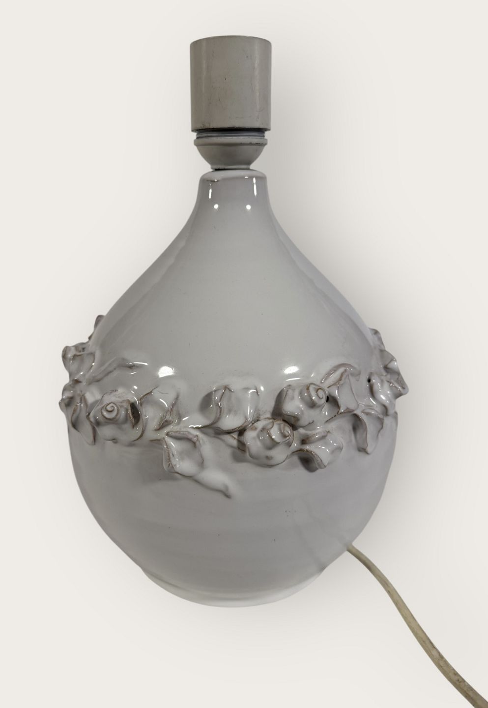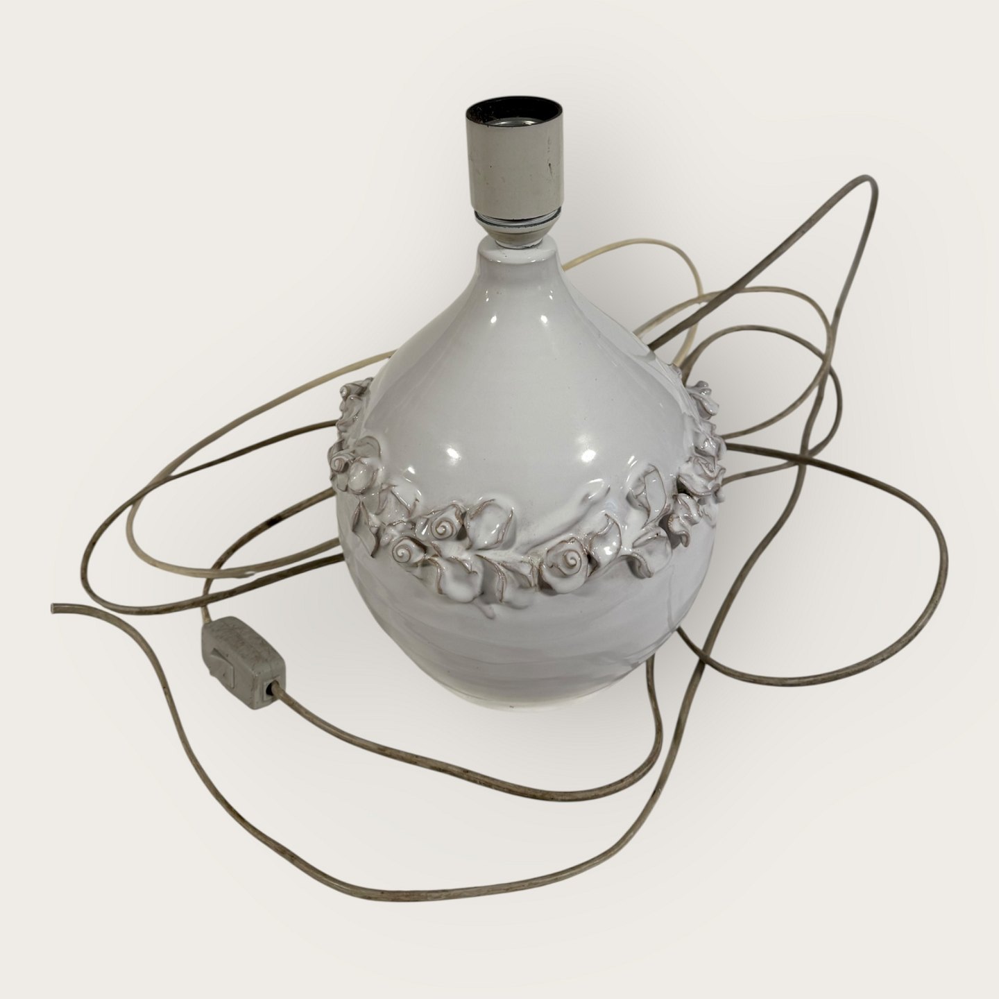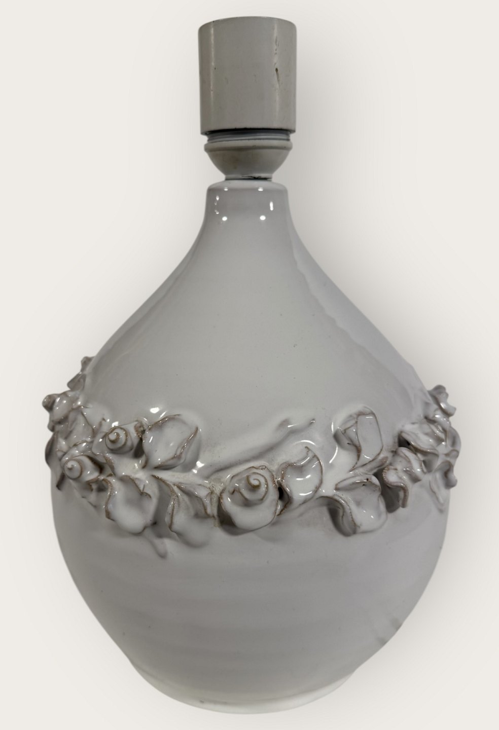 Torben Keramik, Stor hvid bordlampe med blomsterranke, højde med fatning 27,5cm, signeret Torben Danmark 175 *Fin stand*