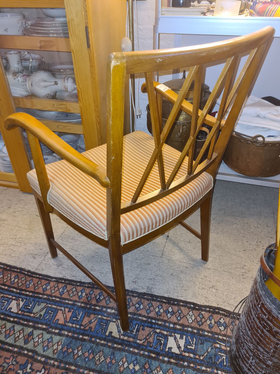 Dansk møbelproducent armstol udført i bejdset bøg m. sæde polstret i møbelstof.