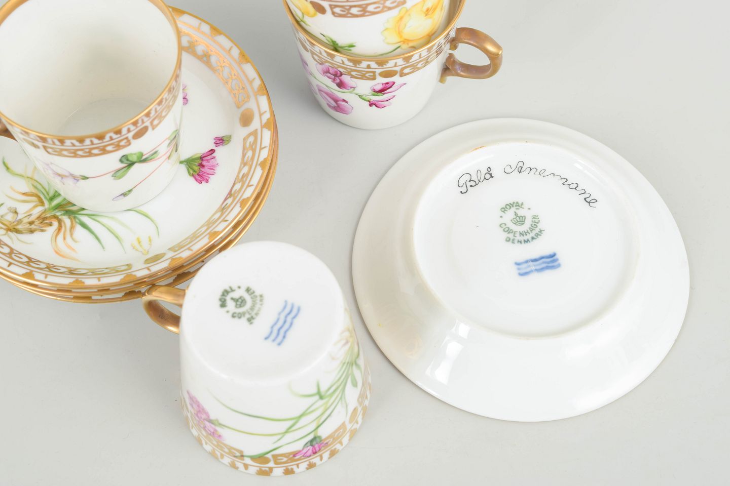 Royal Copenhagen, sæt på fire små kaffekopper med tilhørende underkopper.
