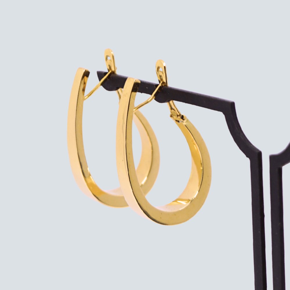 Par store øreringe i 18kt. guld. Aflang creol form.