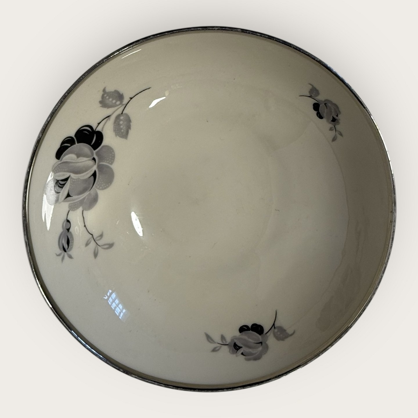 Sort rose, med Plantin kant, KPM, Lyngby, lille skål, 15cm i diameter *lidt slid på sølvkanten ellers pæn stand*