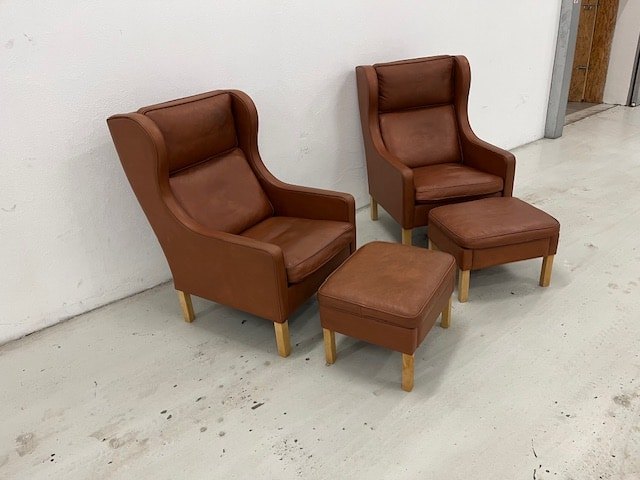 Mogens Hansen MH195 øreklapstole med tilhørende fodskamler