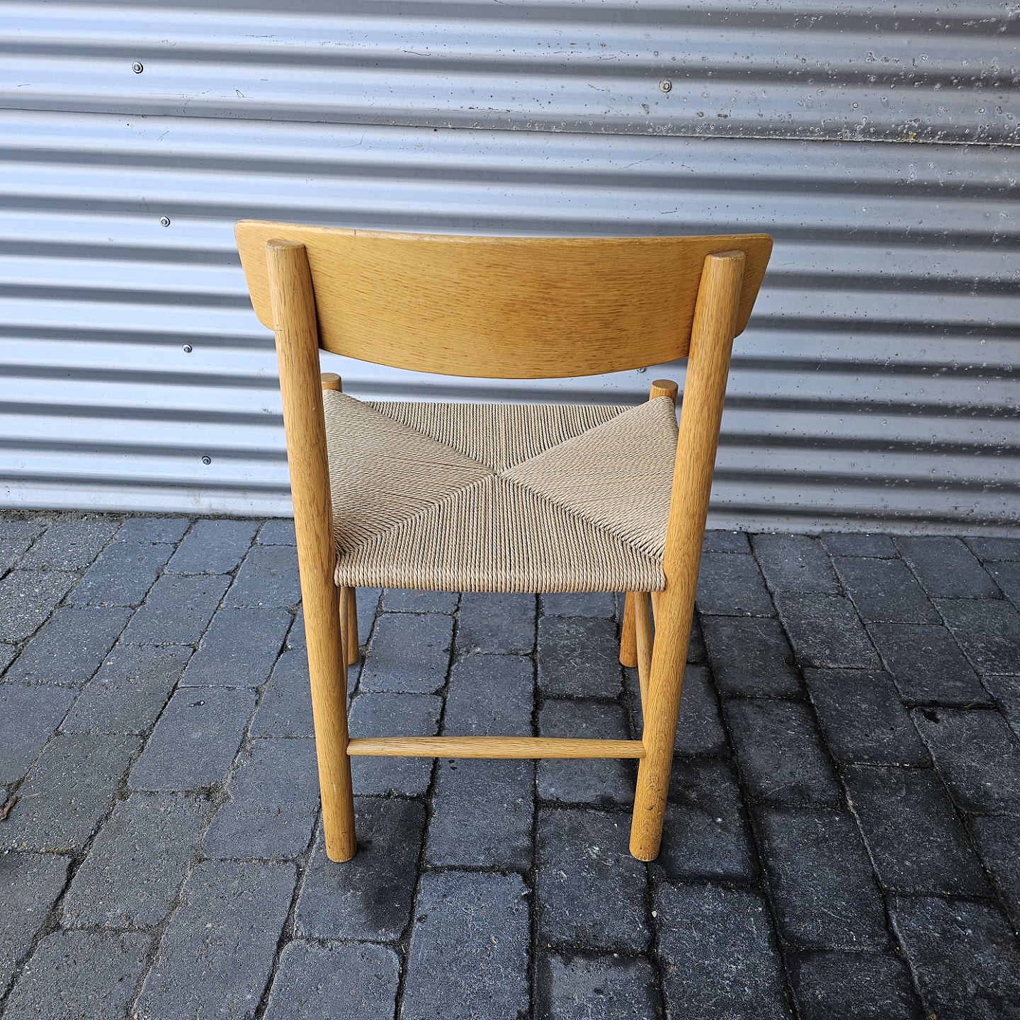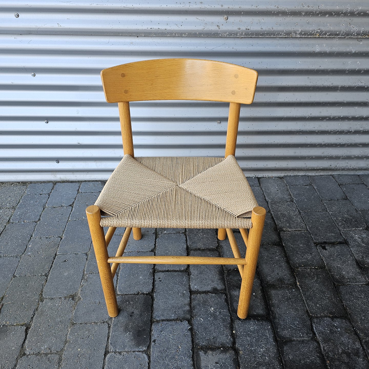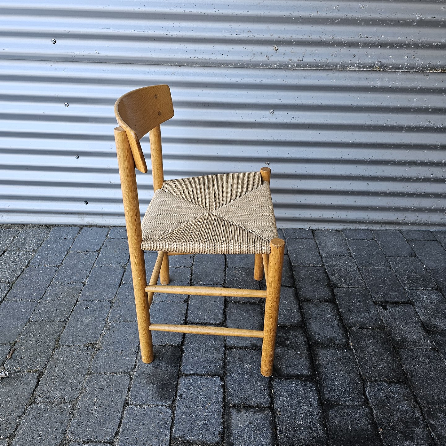 Sæt af 4 folkestole i lakeret eg med sæder af flet, model J39