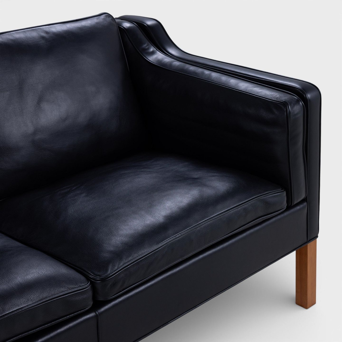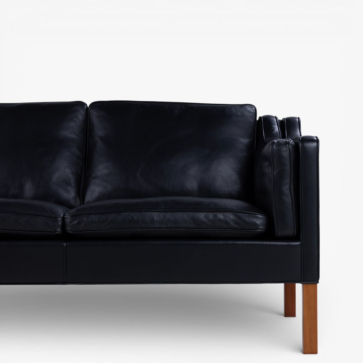 BM 2213 - 3 pers. sofa i sort semi-anilinlæder. Mærket fra producent.