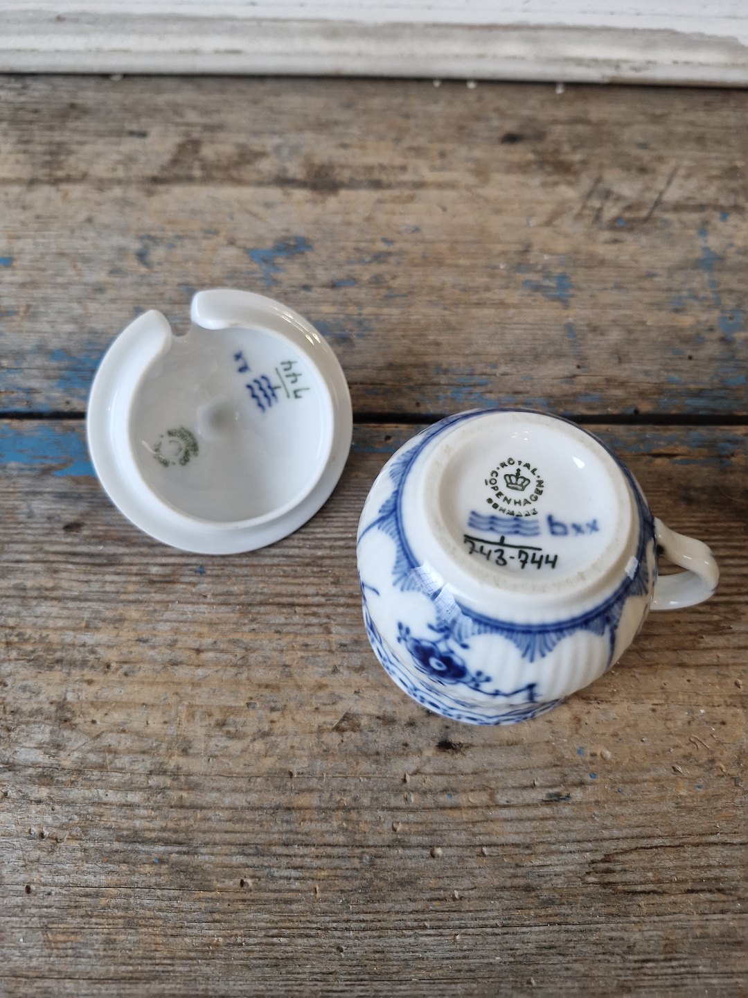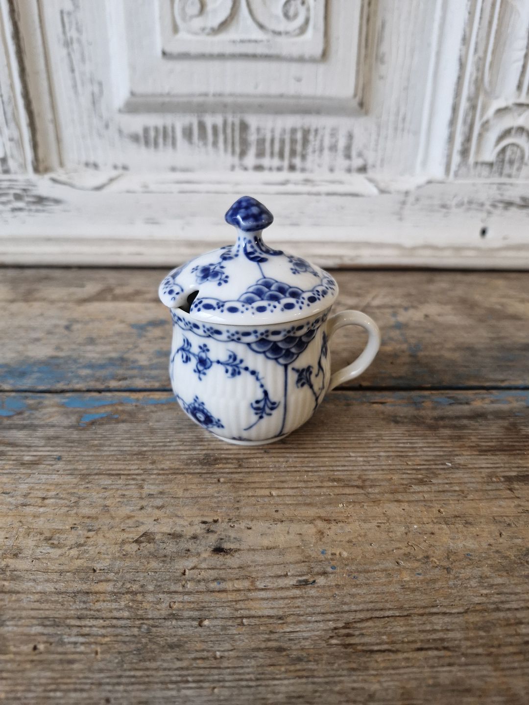 Royal Copenhagen Musselmalet halvblonde sennepskrukke no. 744