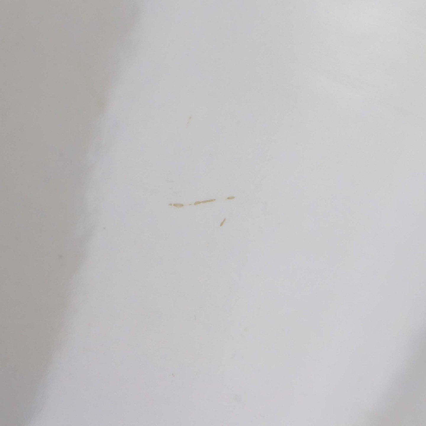 Fajancestel i stelform CA med dekoration af abstrakt motiv i blå og lyseblå på en råhvid baggrund.