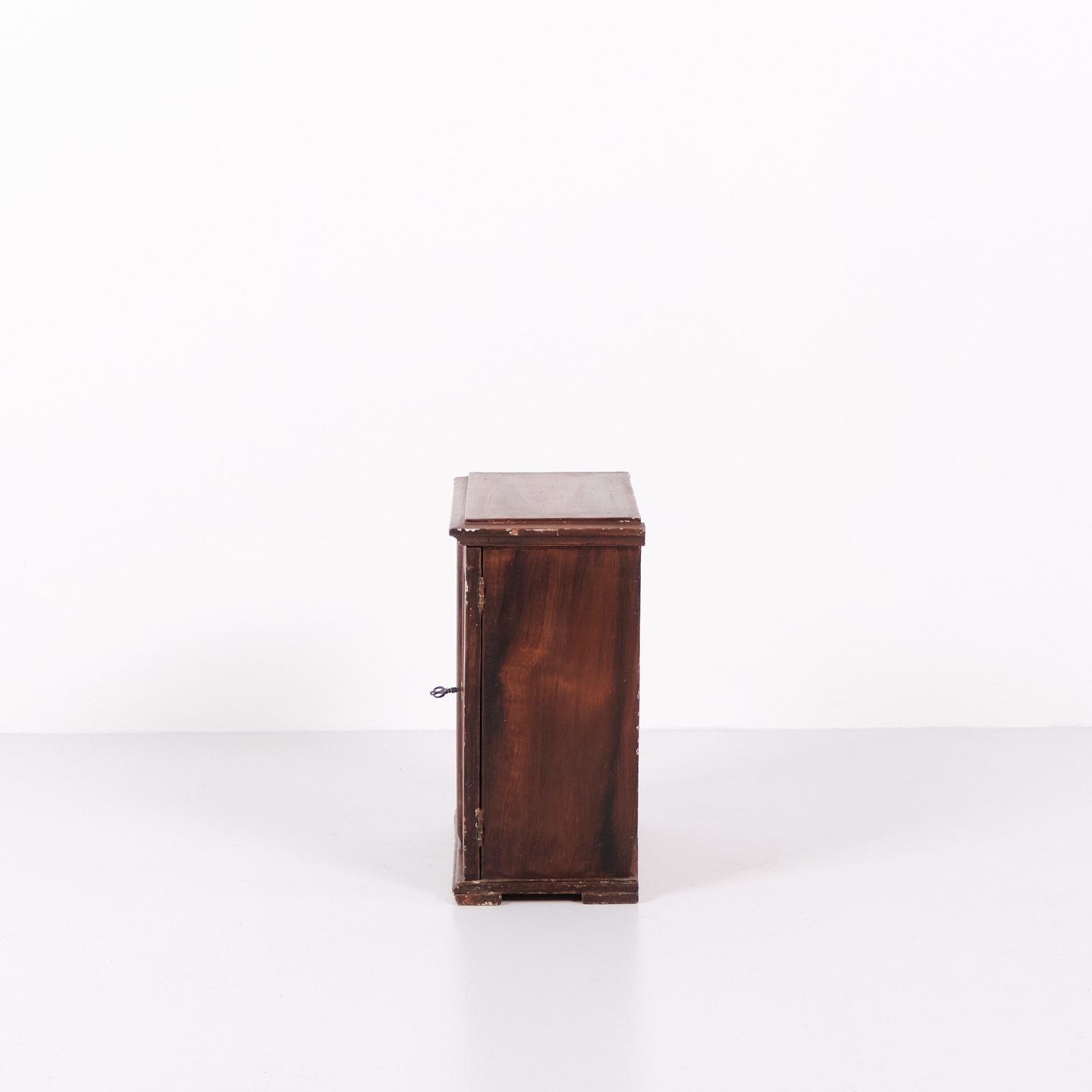 Antikt miniaturemøbel i åremålet fyrretræ med håndsmedede beslag fra 1840’erne. Unikt og dekorativt samlerobjekt med historisk karakter.