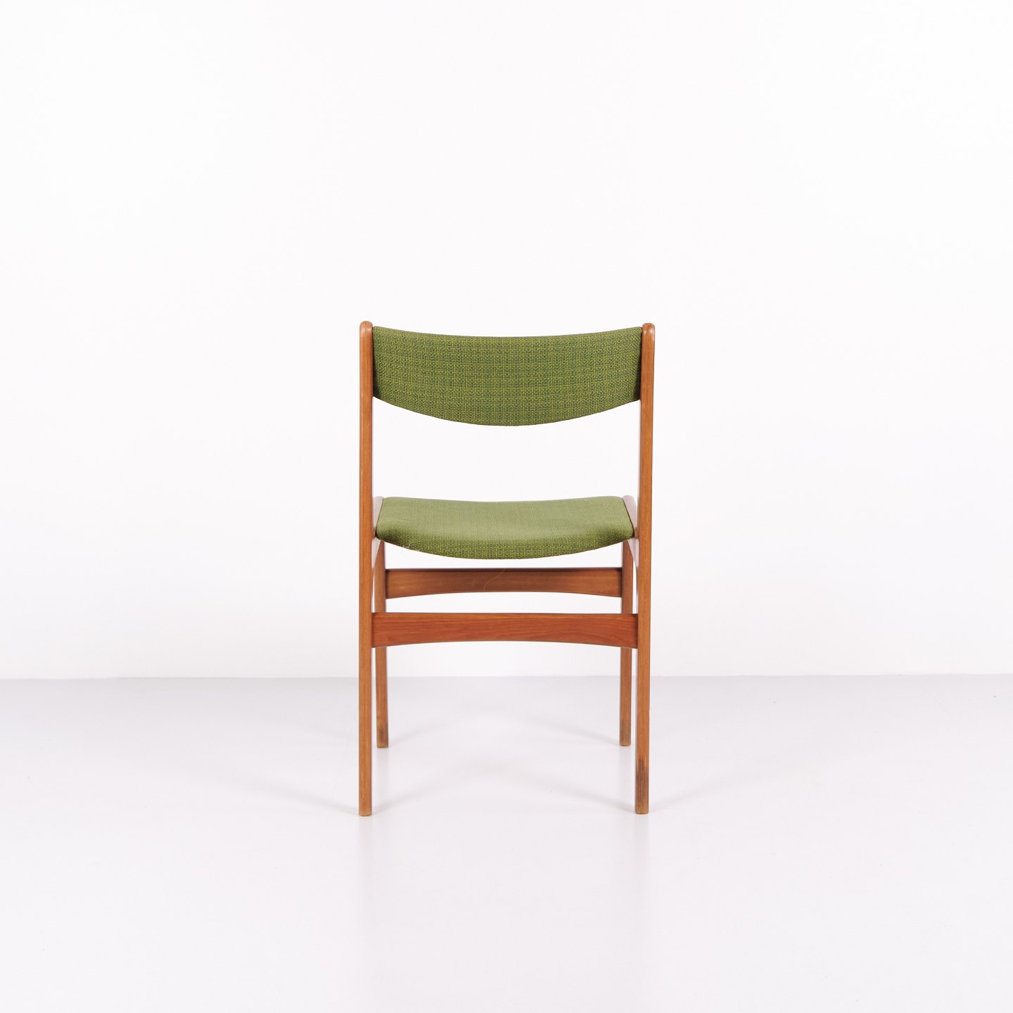 Erik Buch spisebordsstol fra 1960’erne i teak og grønt stof. Klassisk dansk design.