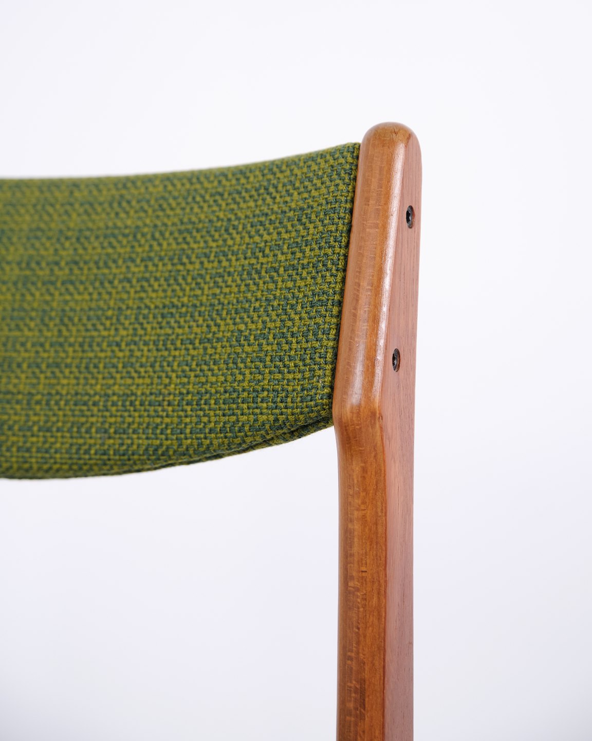 Erik Buch Spisebordsstol i Teak polstret med grønt stof fra 1960erne
