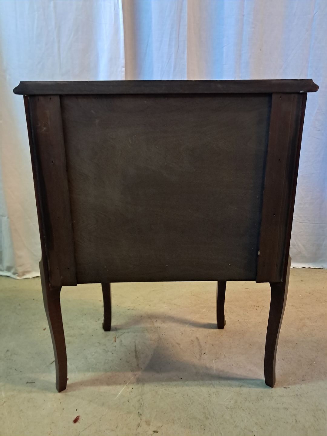 Kommode i fineret mahogni med intarsia, fra 1980erne.