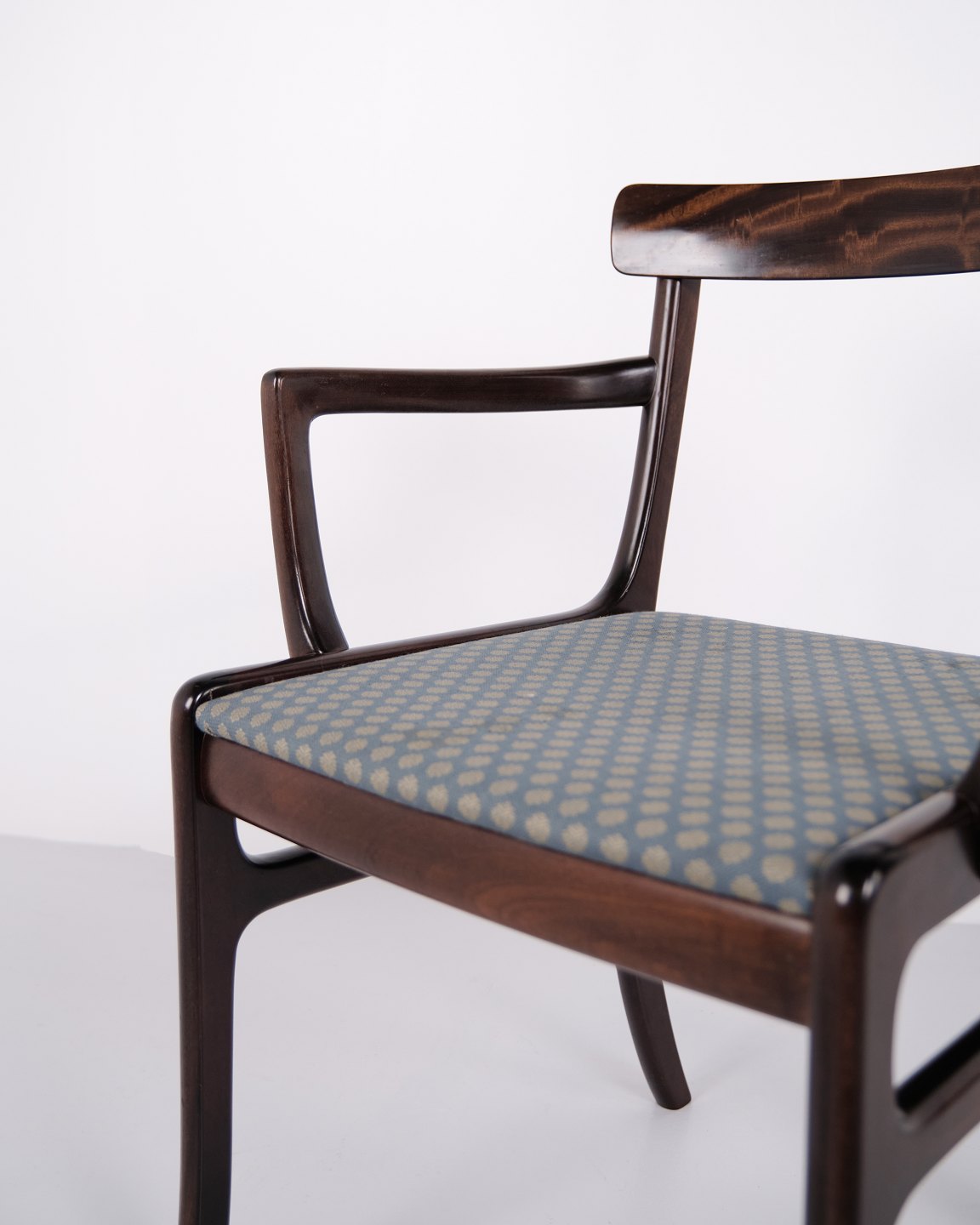 Armstol fra serien Rungstedlund formgivet af Ole Wanscher og produceret hos Poul Jeppesen Møbelfabrik i Danmark i 1950’erne. Stolen er udført i et klassisk og velafbalanceret formsprog, hvor proportioner og snedkerarbejde afspejler den danske designtradition fra midten af det 20. århundrede.