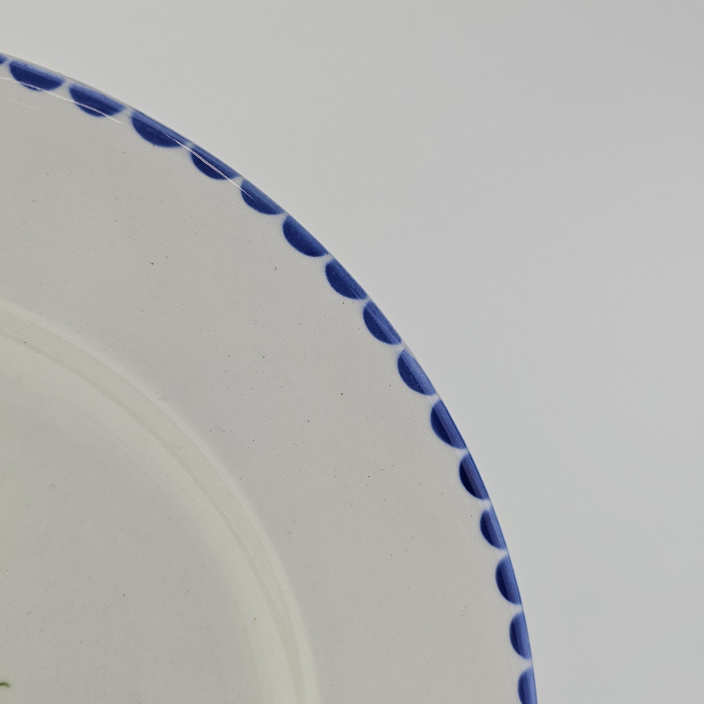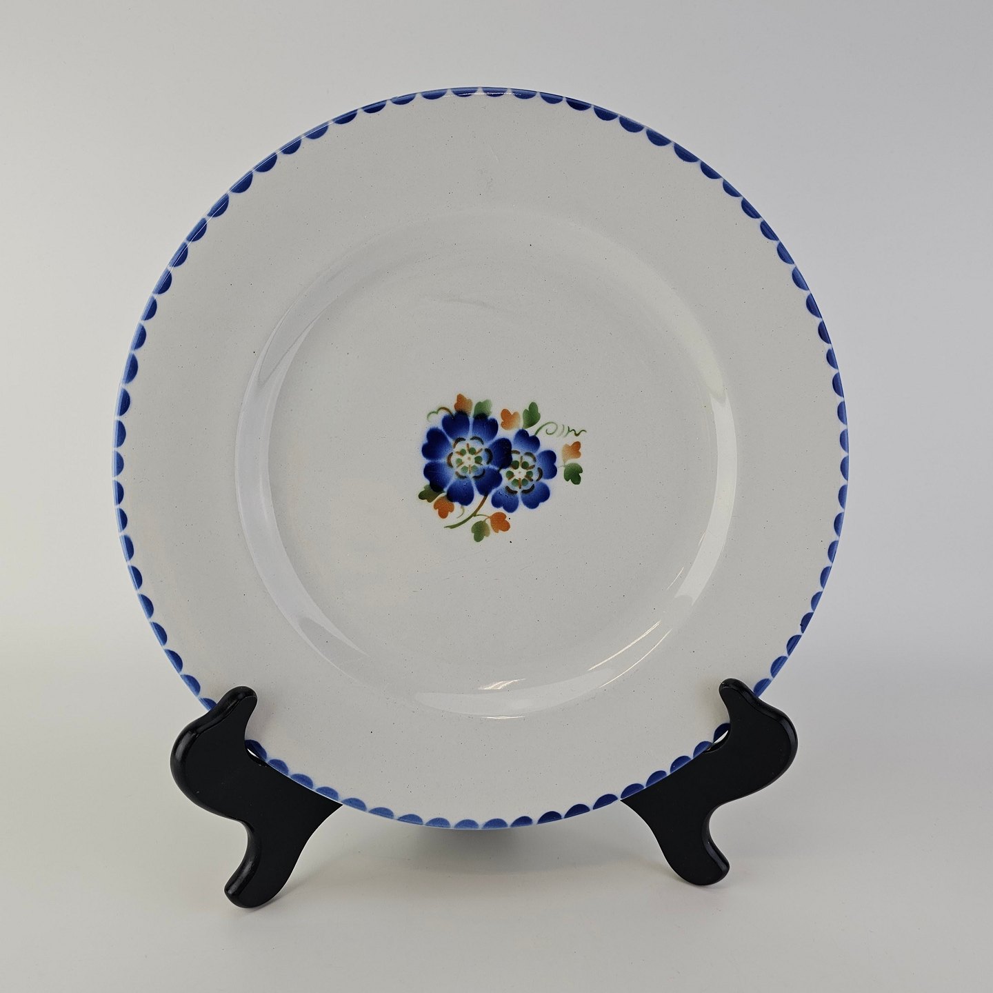 Flad middagstallerken i fajance fra stellet Geranium II fremstillet i perioden 1927-1940.