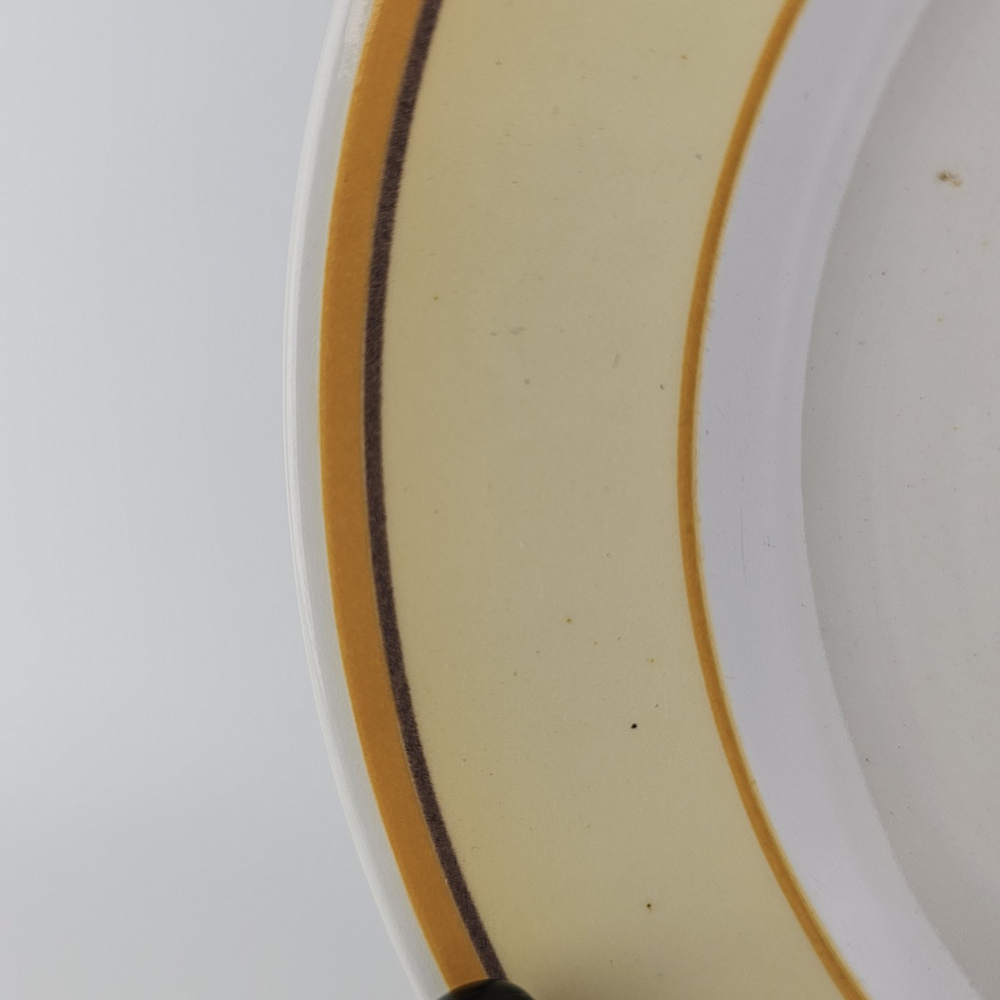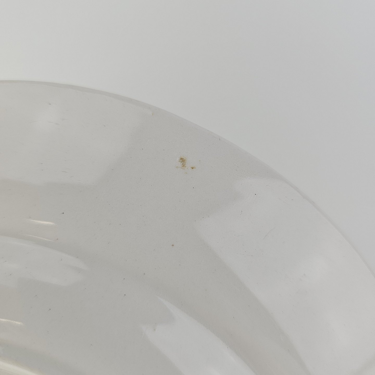 Fremstår med små sorte prikker i glasuren og skrab under bunden