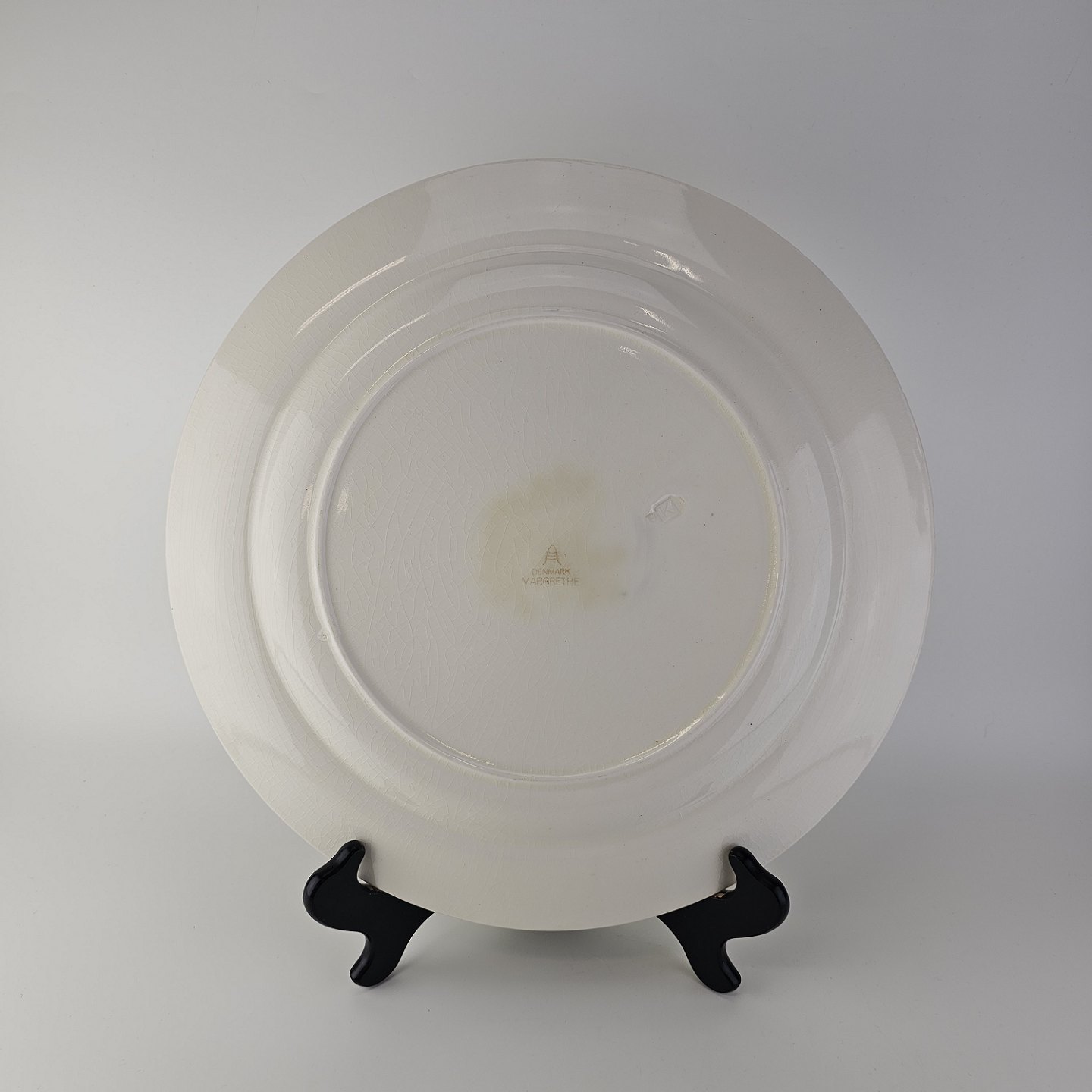 Rundt fad i fajance fra stellet Margrethe fremstillet i perioden 1937-1940.