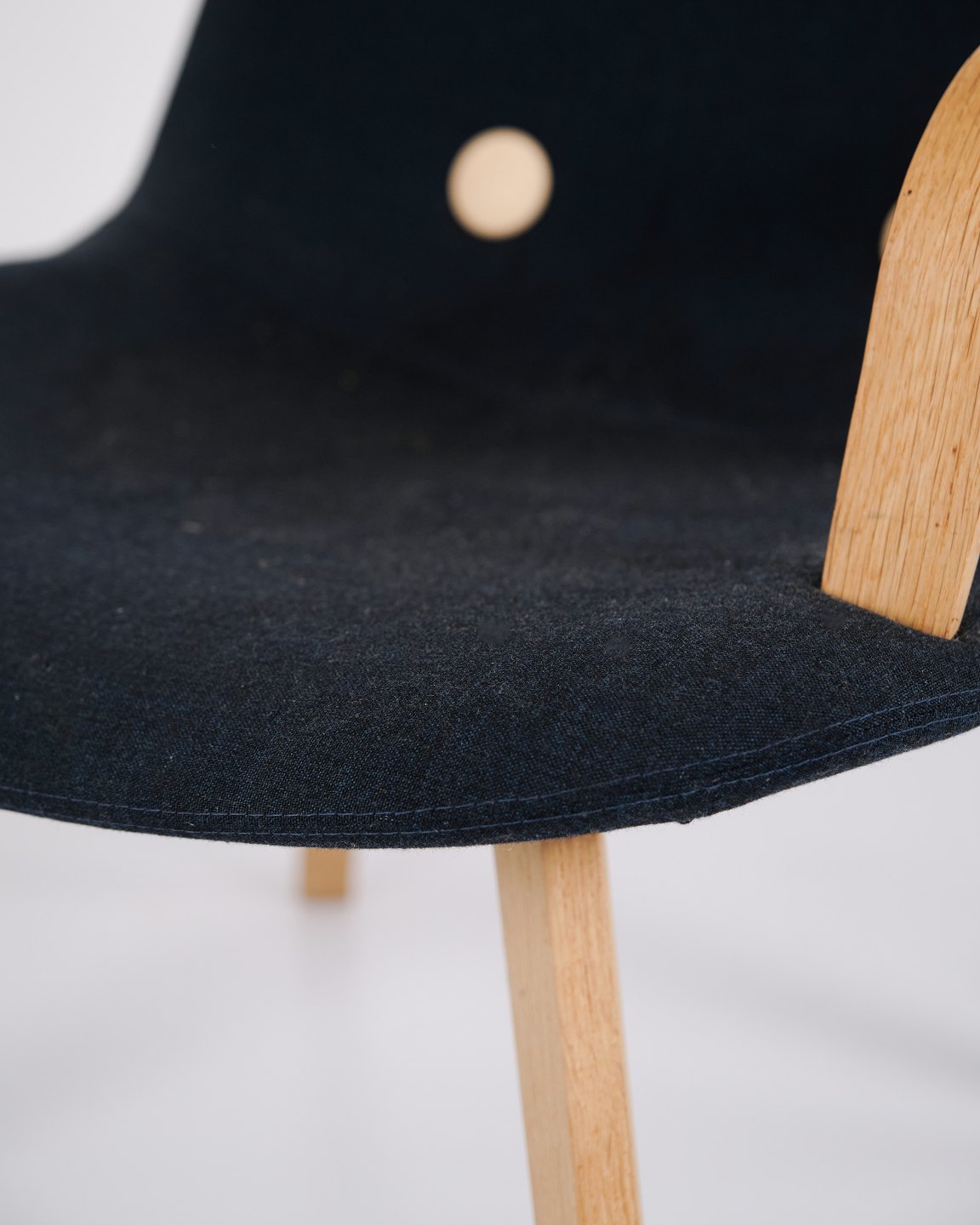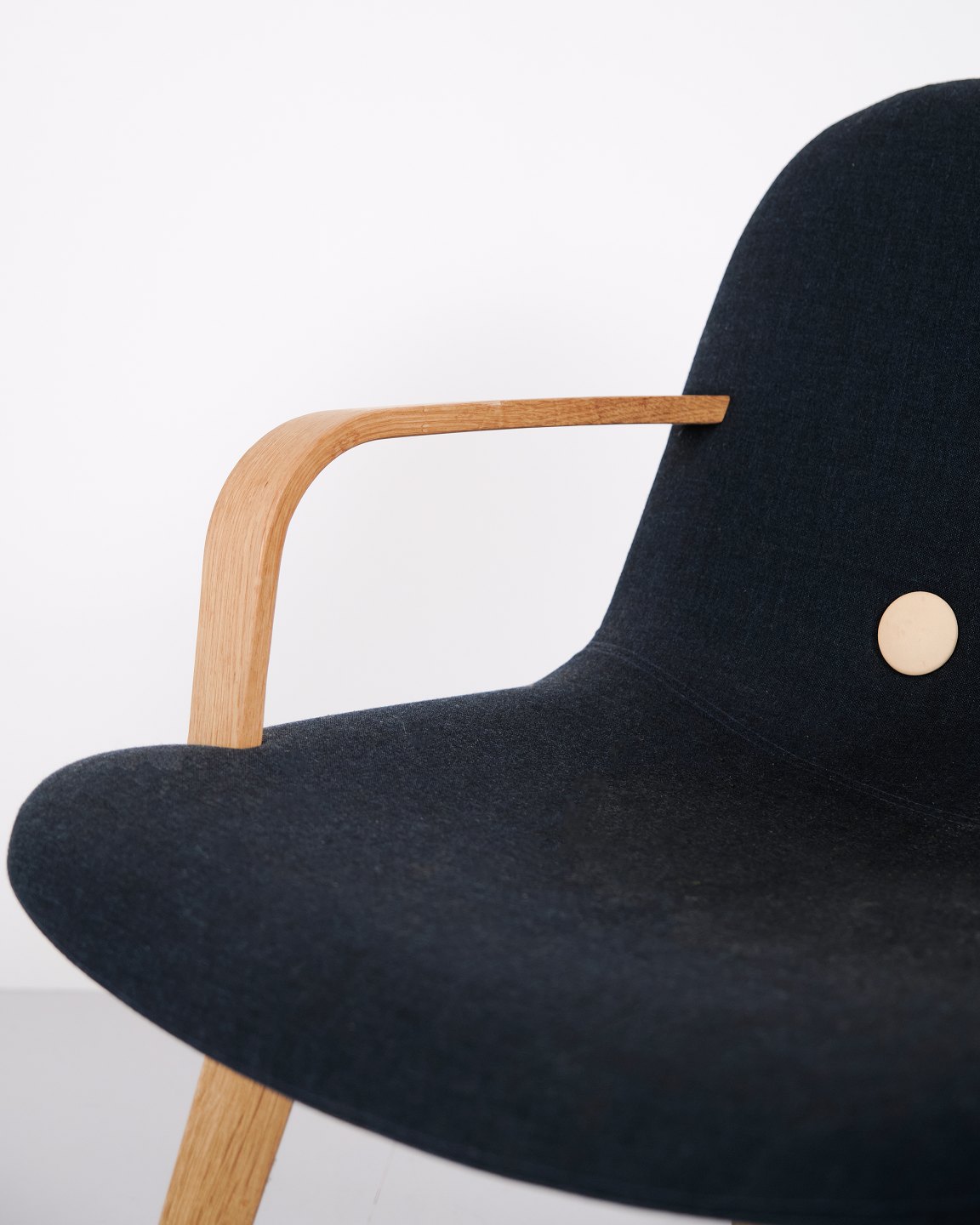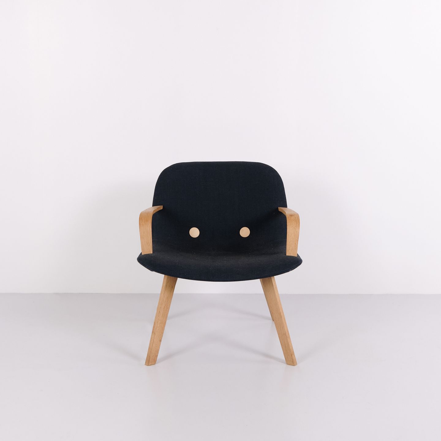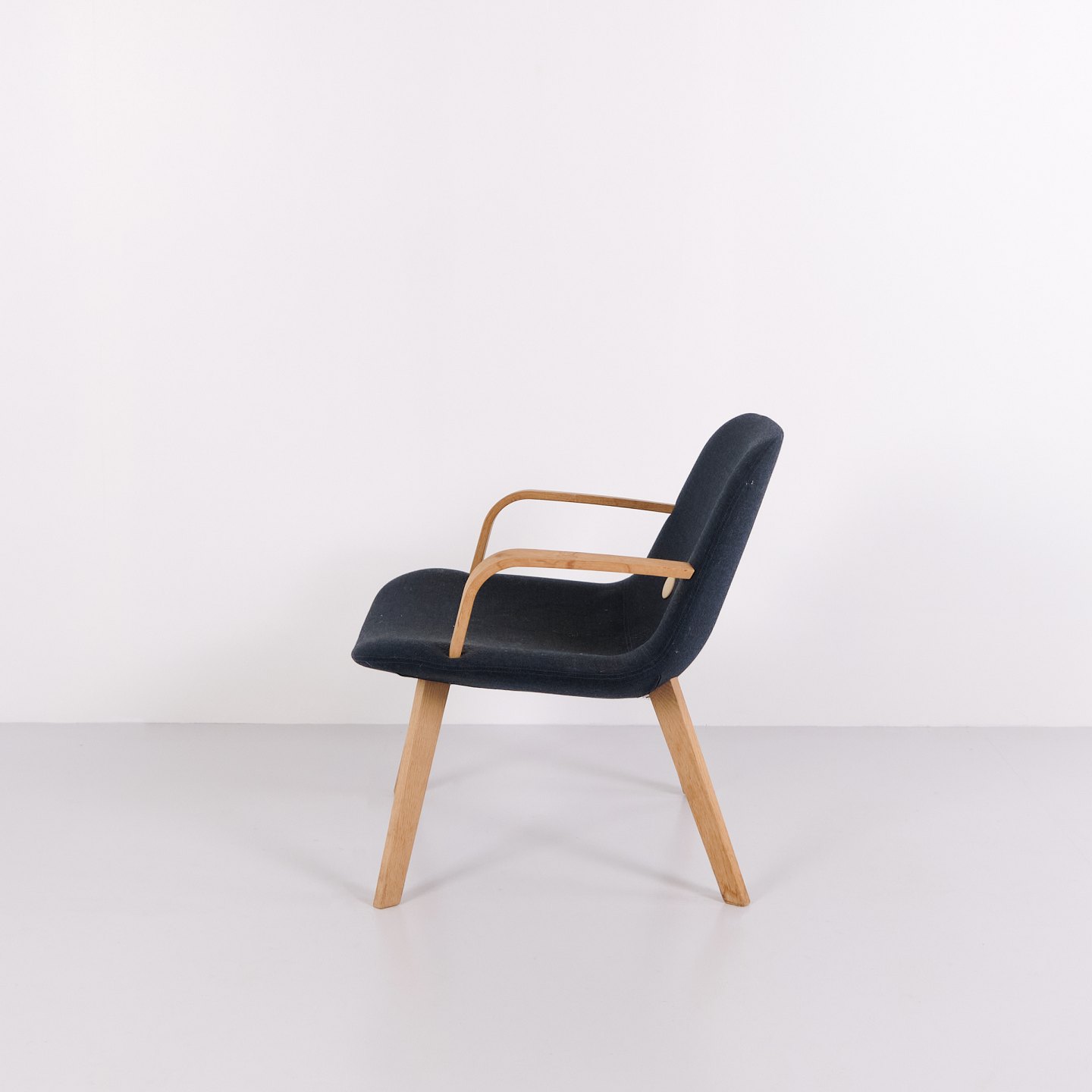 Erik Jørgensen lounge chair model EJ 3 in oak and blue fabric. Danish design with a simple and timeless design language.