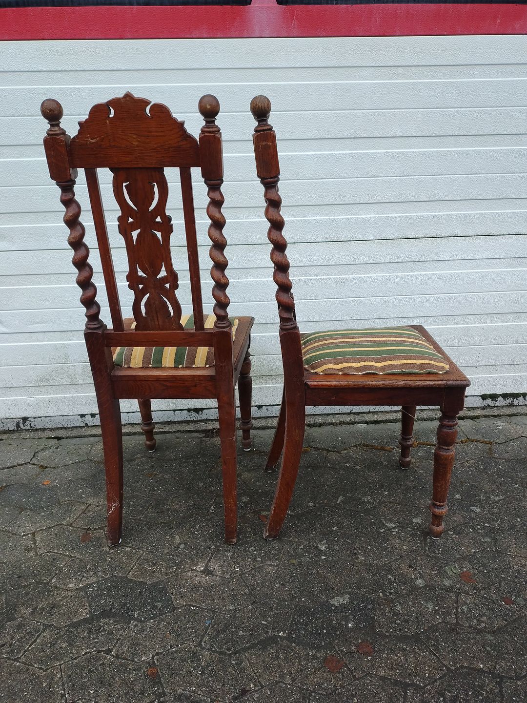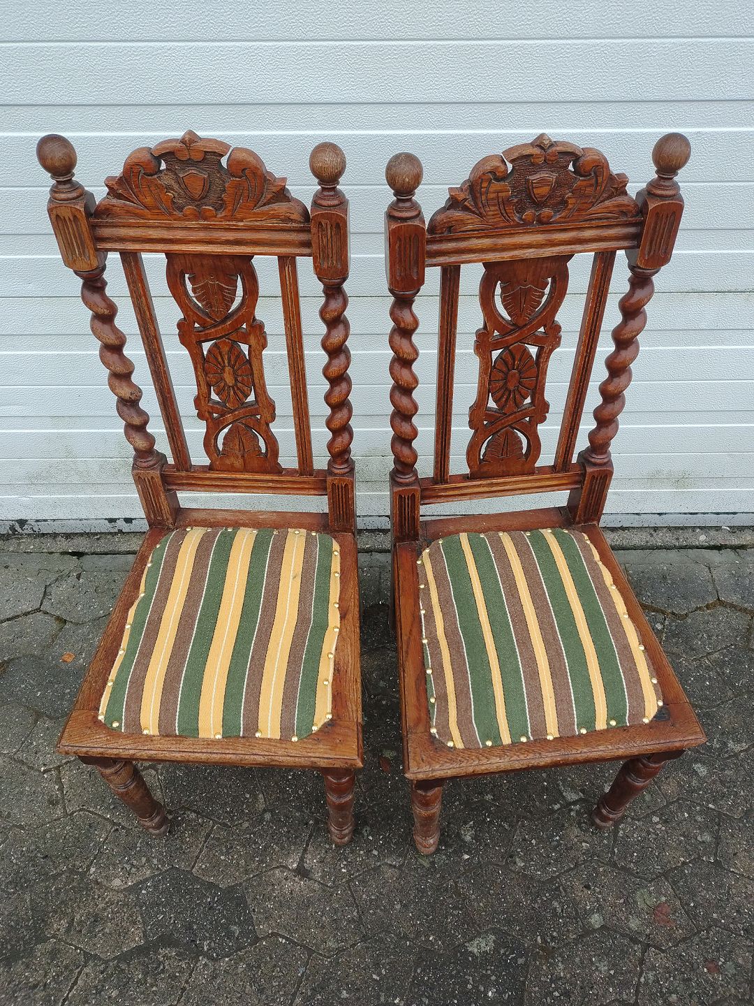 2 Stole i bejdset massivt egetræ, fra 1920erne.