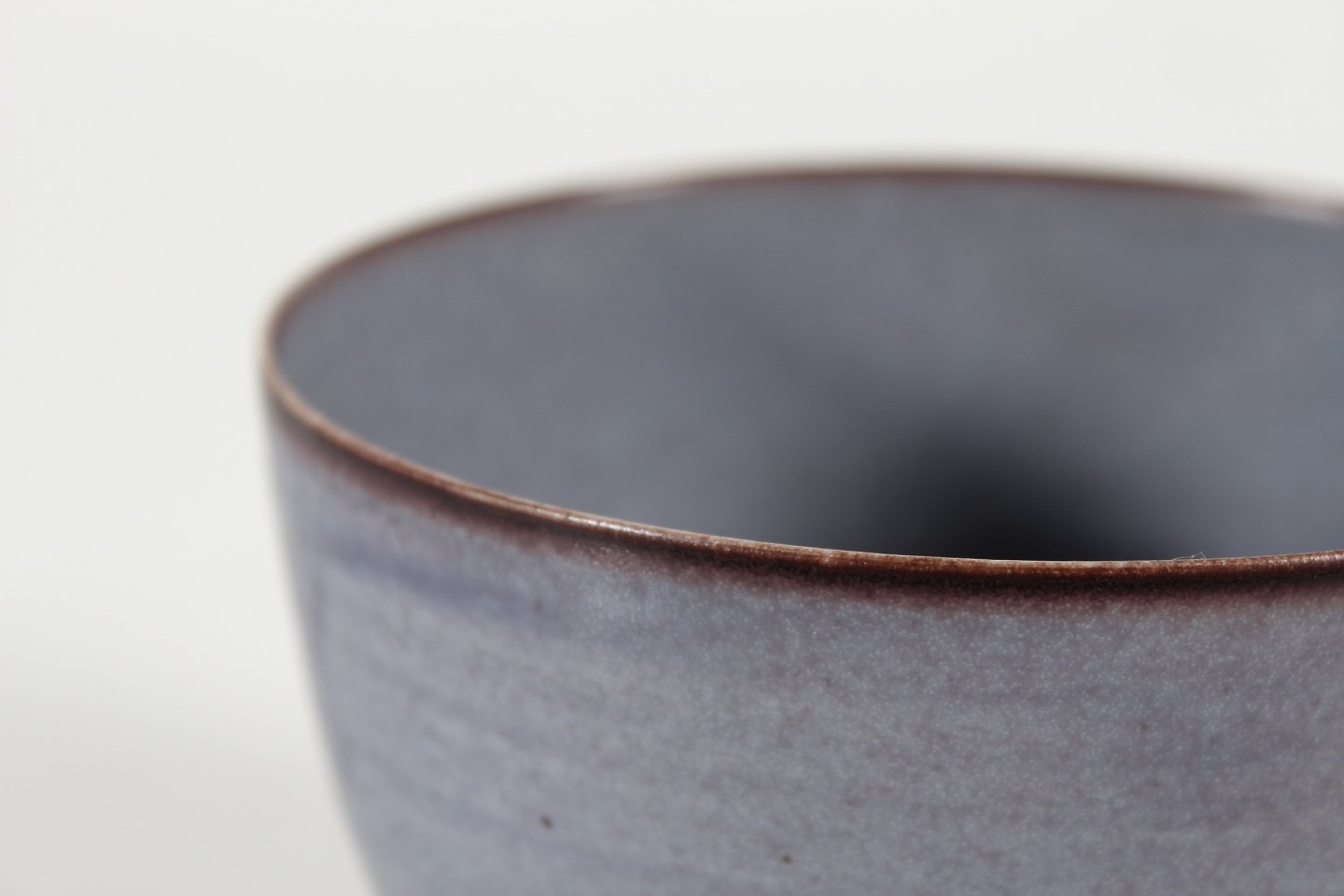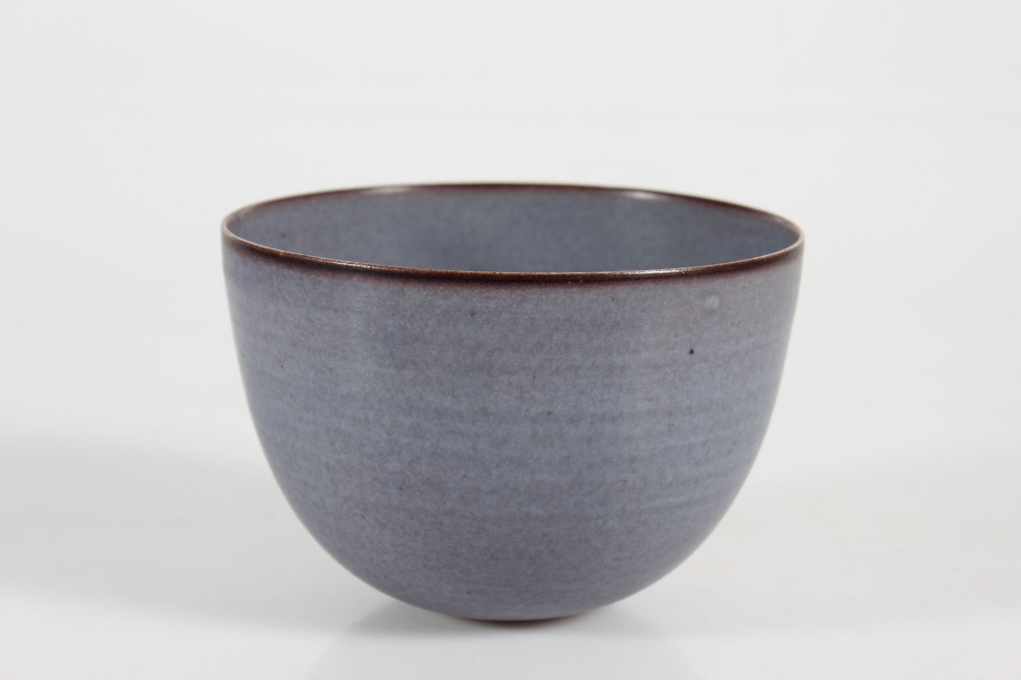 Tynd drejet skål dekoreret med grålilla glasur